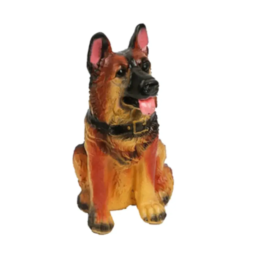 Размер копилки — 21 см, материал — гипс. Овчарка с открытым ртом и высунутым языком дарит позитив. Изделие легко поддерживать в чистоте: достаточно аккуратно протирать мягкой слегка влажной тканью, чтобы сохранить привлекательный внешний вид.
