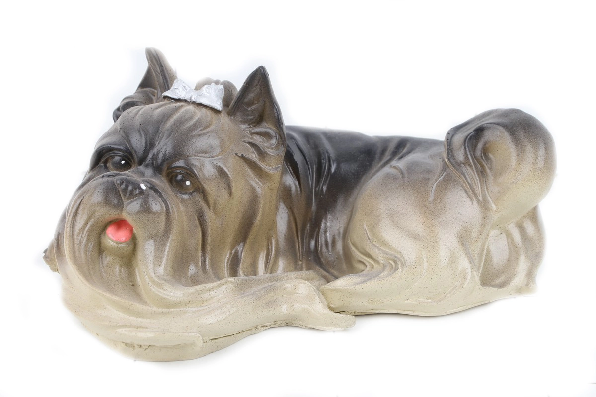 - Уникальный дизайн: Фигурка реалистично передаёт облик лежащего йорка с детальной проработкой шерсти, выразительными глазами и милой мордочкой. Декоративный бантик на голове добавляет образу шарма.
