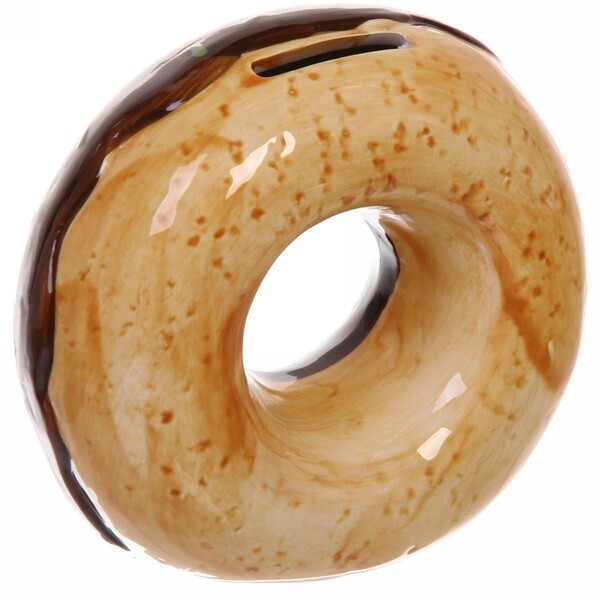 Яркая керамическая копилка в форме шоколадного пончика с разноцветной посыпкой станет практичным аксессуаром для систематичного накопления мелочи и эффектным элементом декора. Идеально подходит для кухни, детской комнаты или офисного пространства.