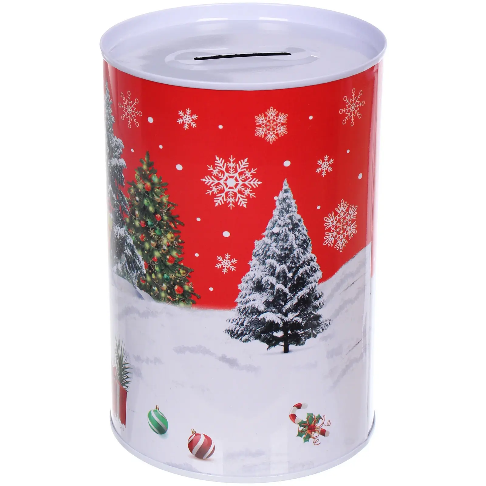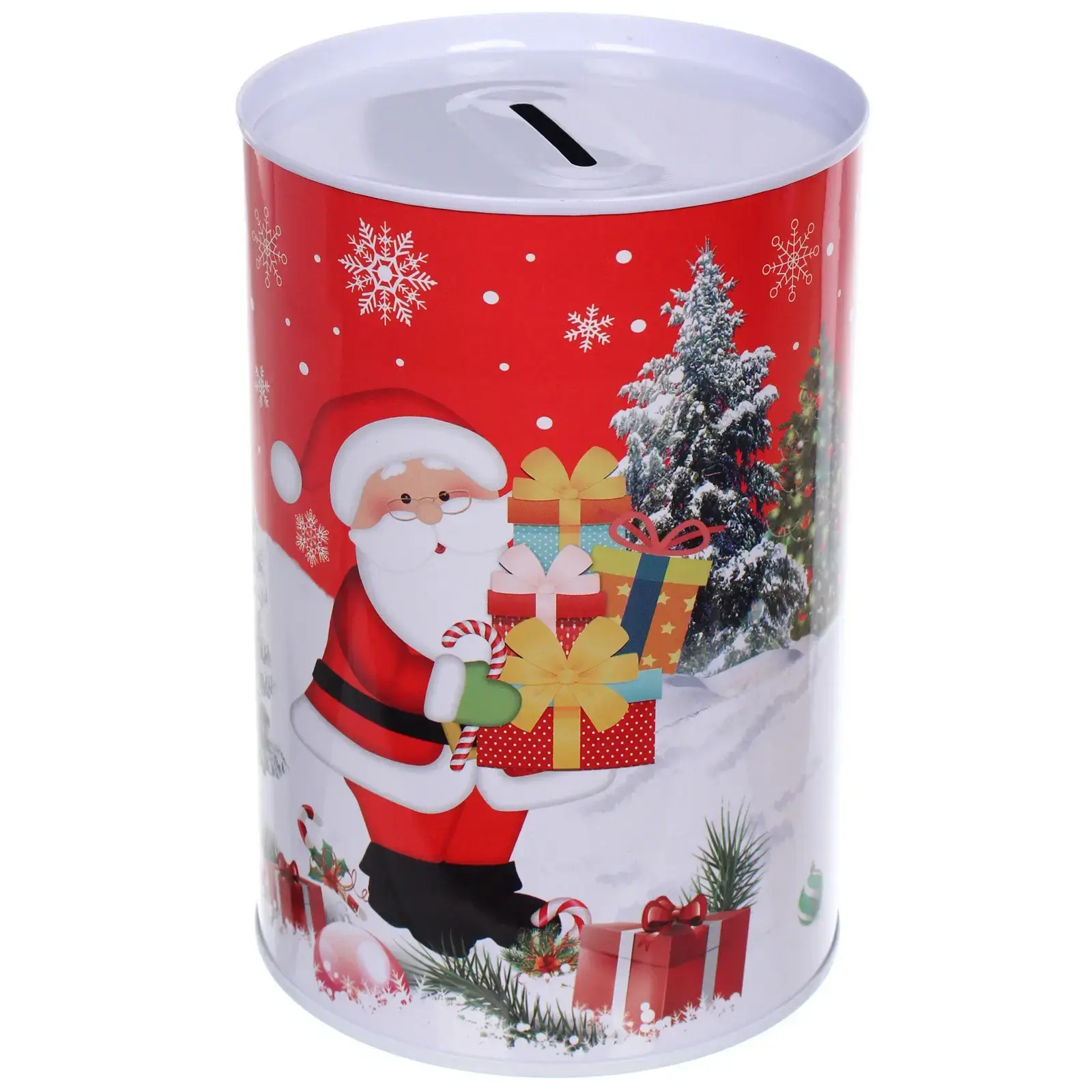 Копилка новогодняя, настроение праздника, красный, жесть, 10×15 см, стильный сувенир для сбора монет