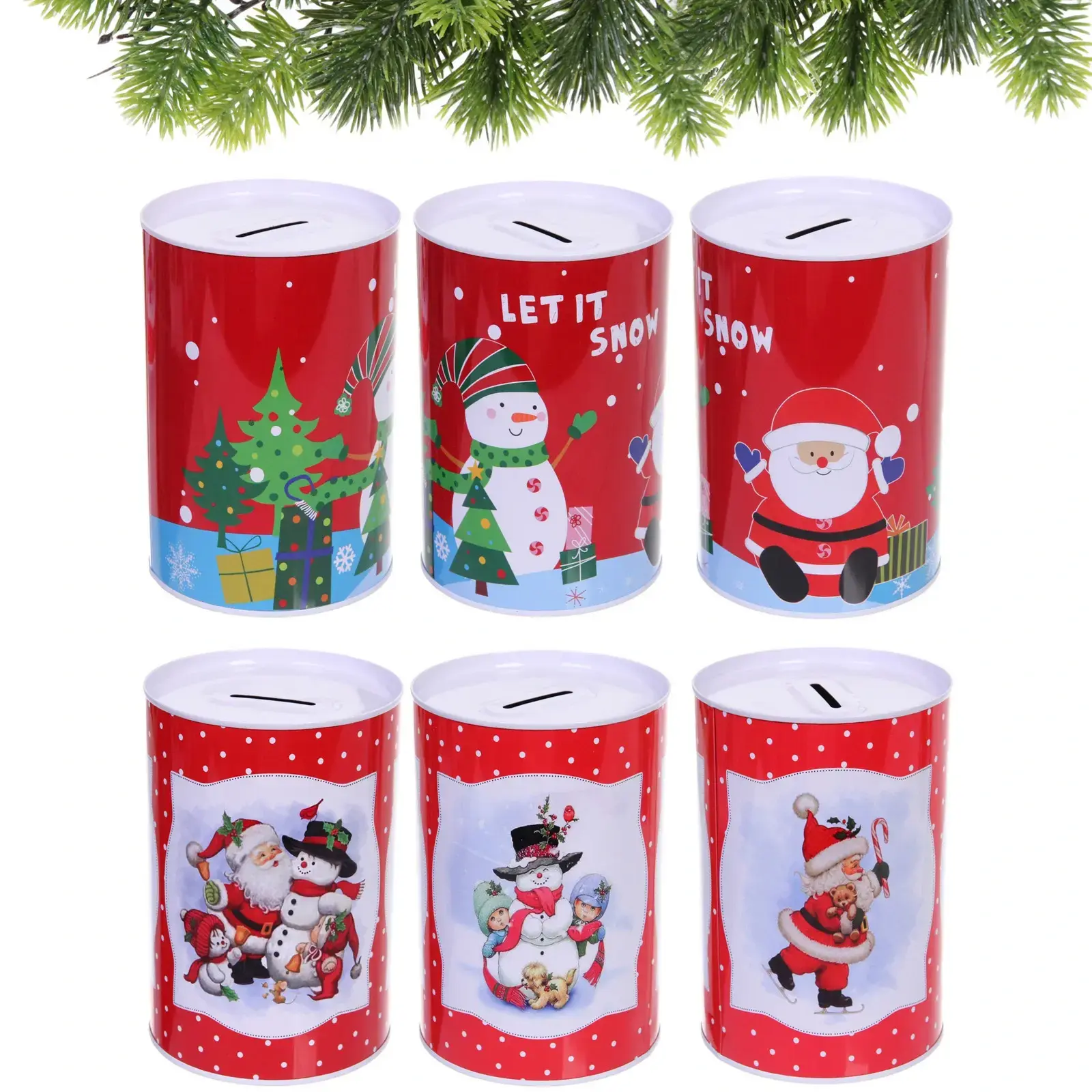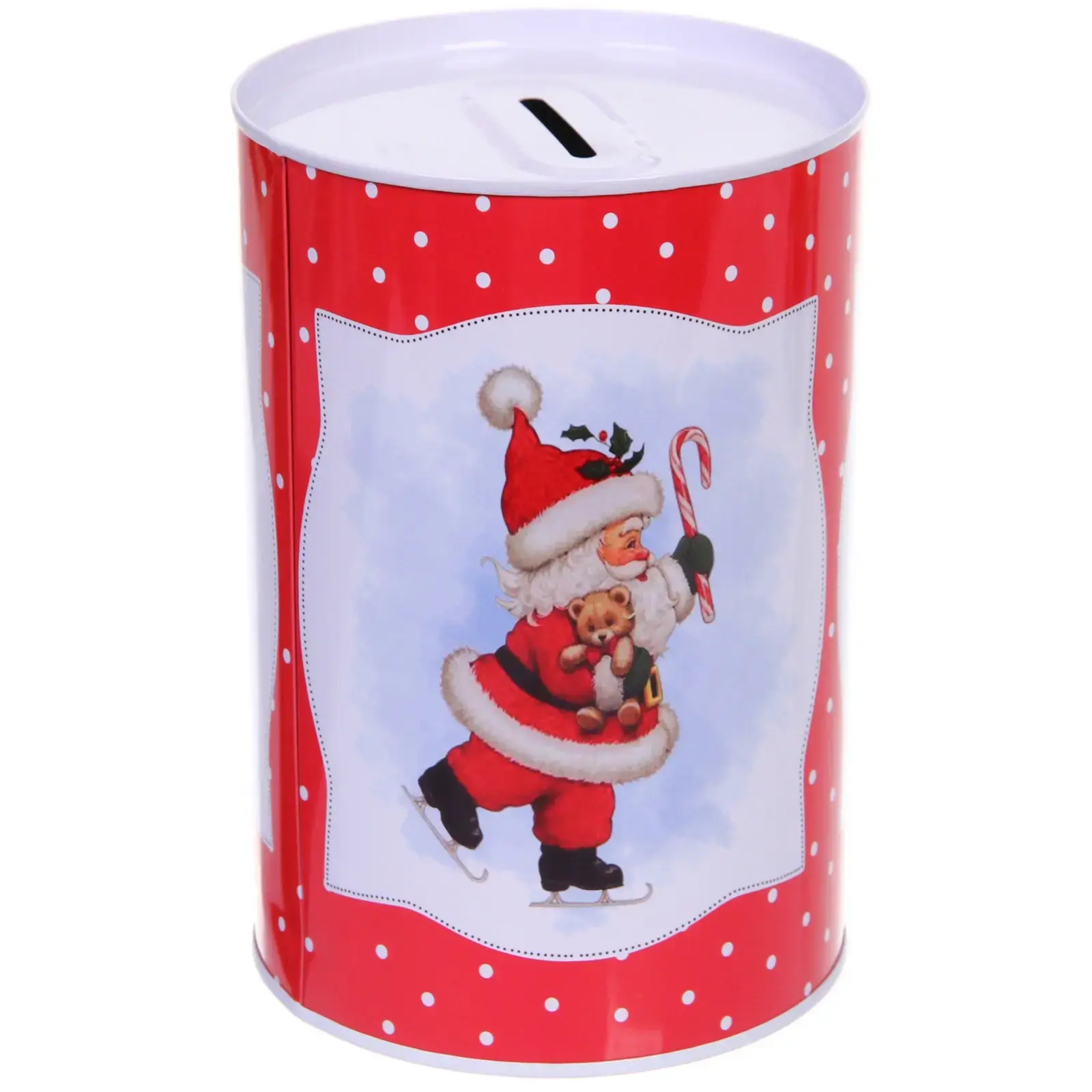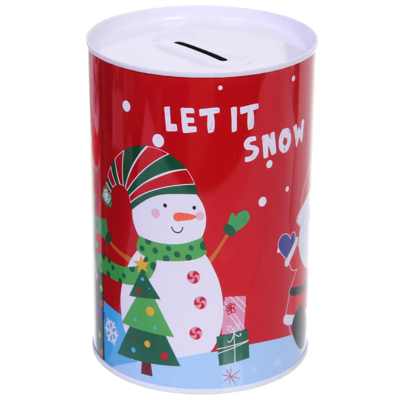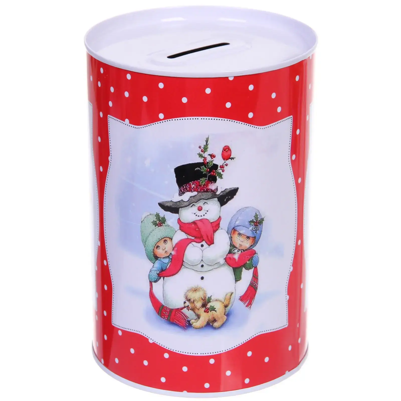Копилка жестяная «Новогодний микс», 10х15 см, праздничный декор с сантой и снеговиками