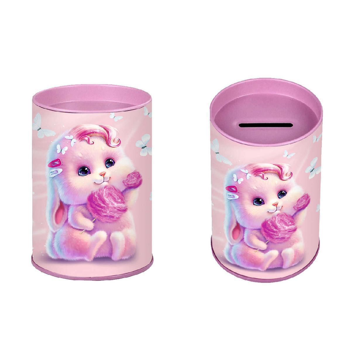 Копилка выполнена из металла с полноцветной печатью, что обеспечивает долговечность и яркость изображения. Размеры 10,4х7,5 см делают её компактной и удобной для использования. Не упустите возможность сделать свой рабочий процесс более организованным и приятным с копилкой-подставкой 'Розовый зайка'!