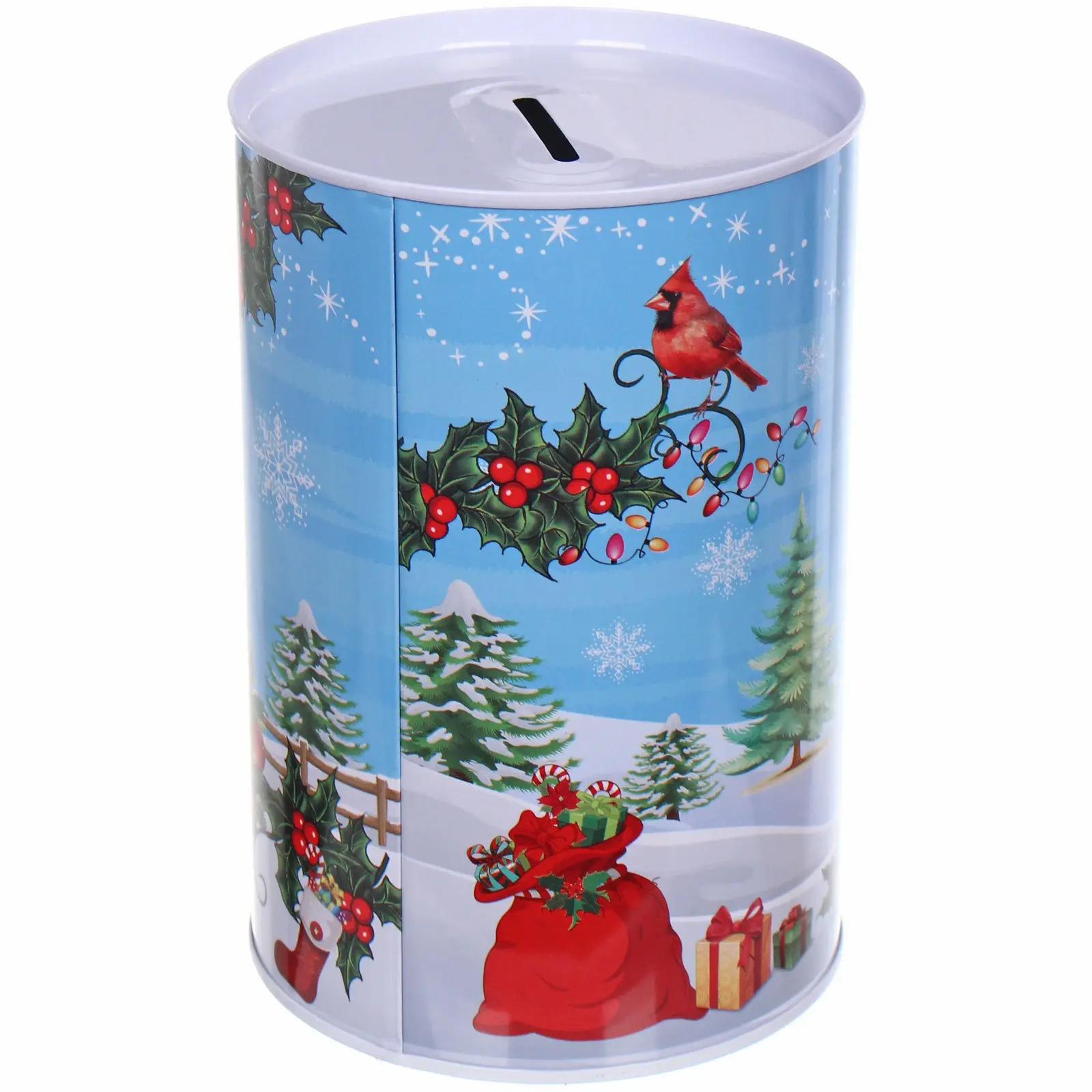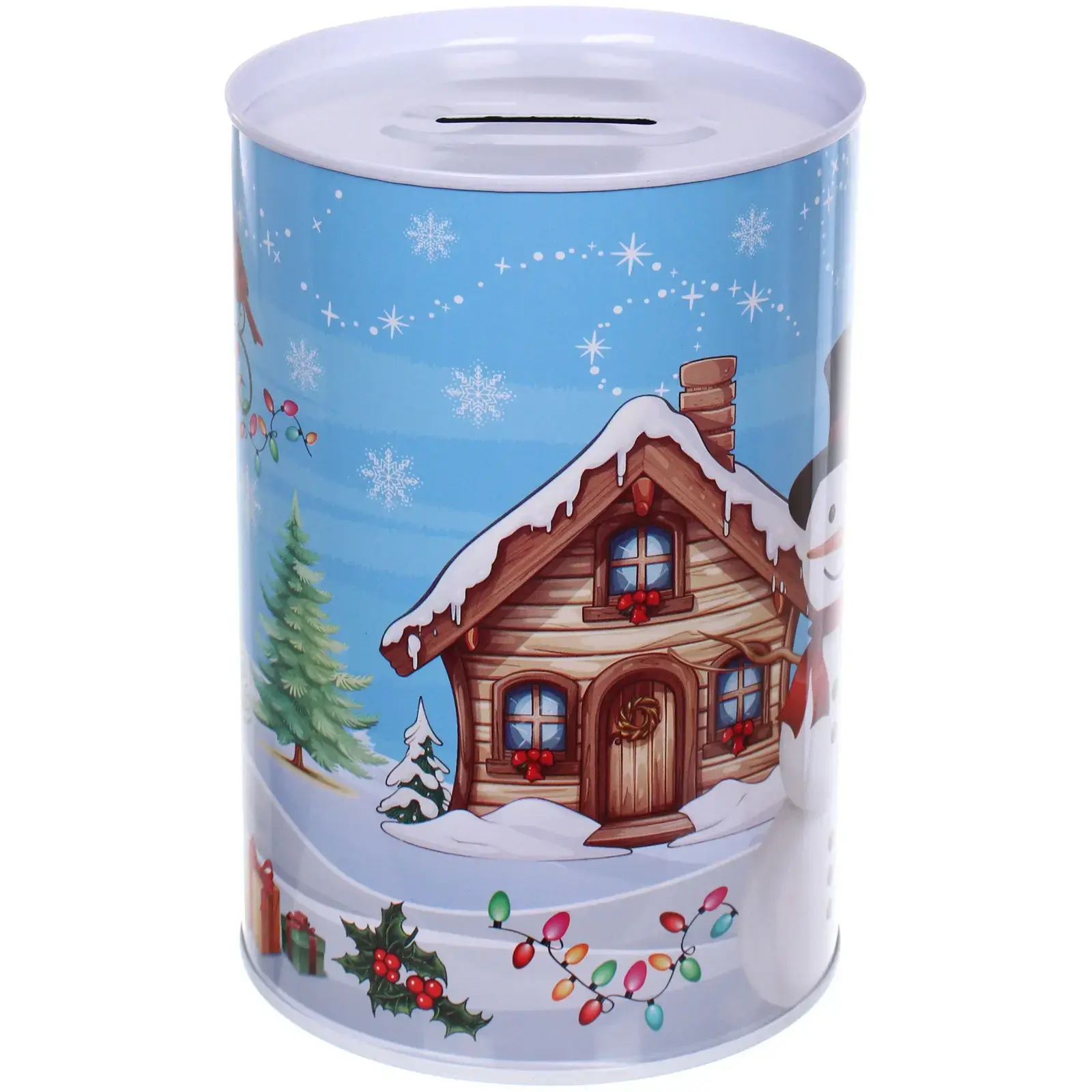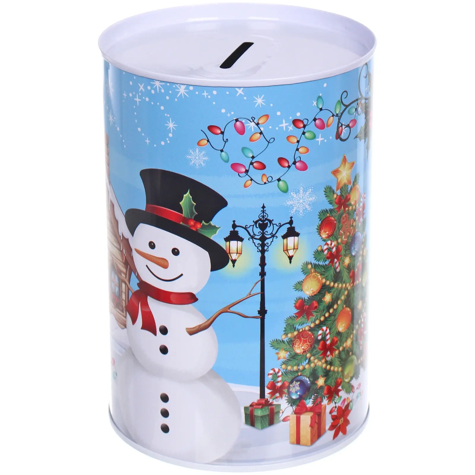 Подарите себе и близким праздник в каждой монете. Эта стильная копилка в форме улыбающегося снеговика создаёт атмосферу уюта и радости, а её яркий голубой цвет и новогодние мотивы делают её центром любого новогоднего декора.