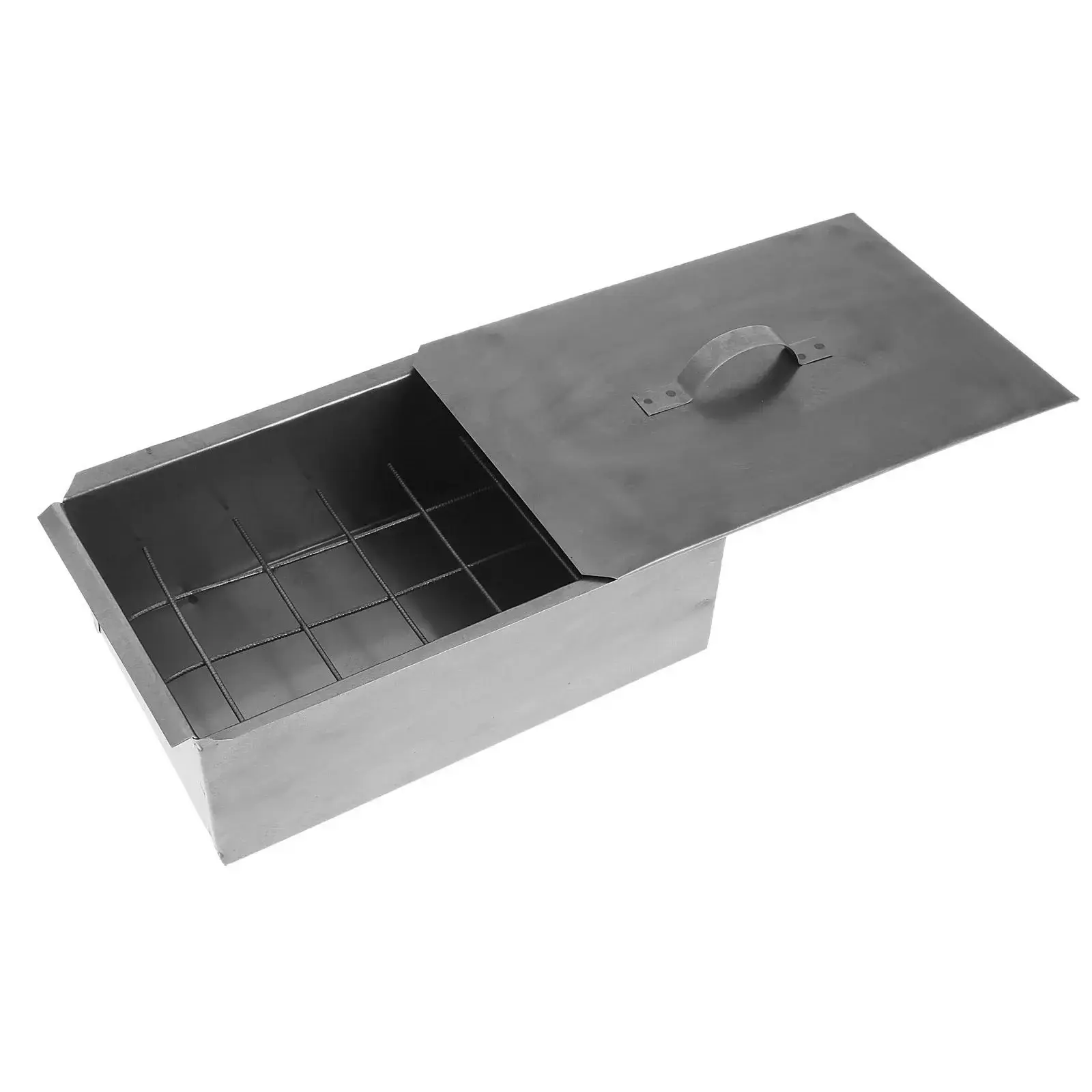Компактные габариты (31х19х11.5 см) позволяют брать коптильню в рюкзак или багажник авто. Цельносварная конструкция без сварных швов гарантирует долгий срок службы. Серебристый матовый корпус легко очищается от нагара и копоти.