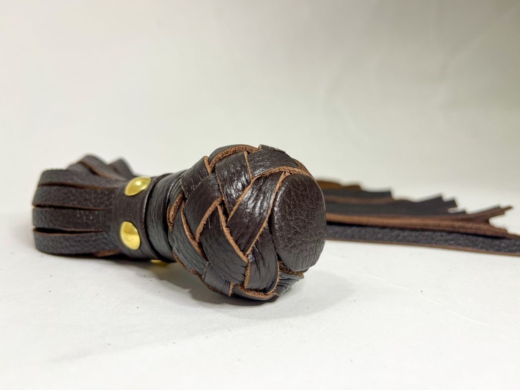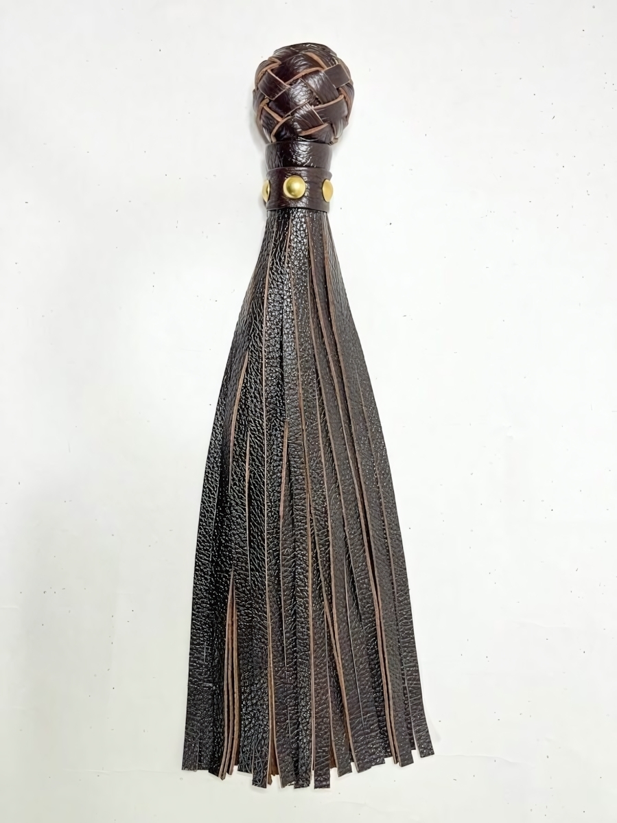 Эта изящная кожаная плеть длиной 30 см создана для тех, кто ценит качество и стиль в интимных аксессуарах. Миниатюрная рукоятка с плетением и металлической фурнитурой идеально ложится в руку, обеспечивая комфортное использование.