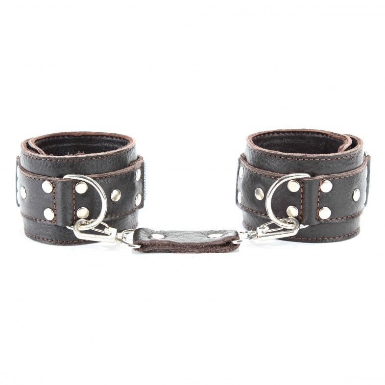 Наручники кожаные 'БДСМ Арсенал', коричневые, регулируемые, ширина 5.5см