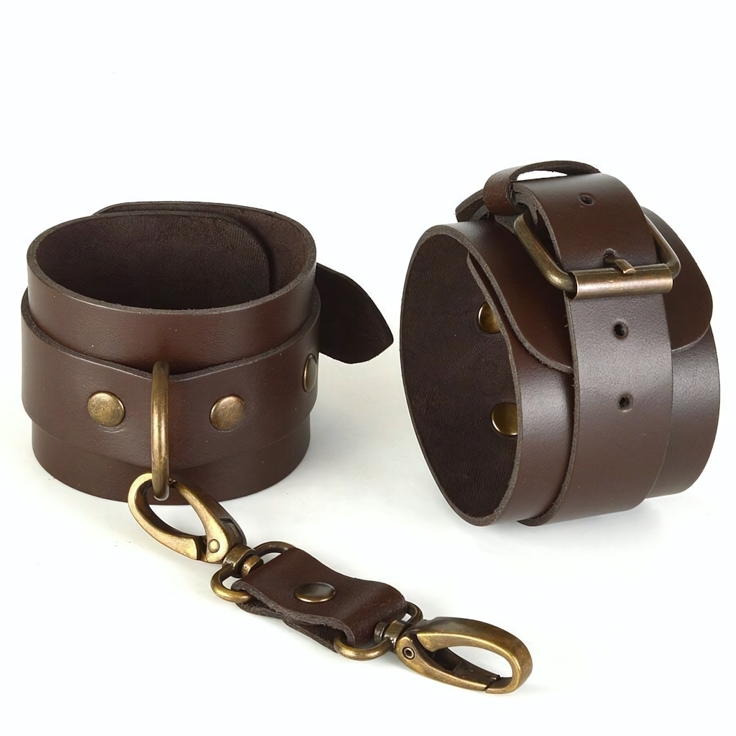 Наручники кожаные коричневые, регулируемые, Россия, 'Ideal', соединительная цепь