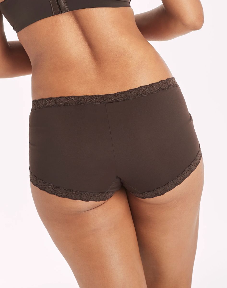 Трусы-шорты женские с кружевом, микрофибра, заниженная талия, размер XL, коричневый