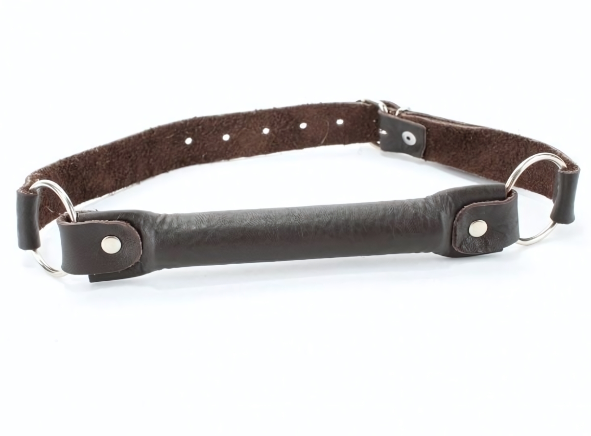 Коричневый кожаный кляп-трензель для БДСМ игр