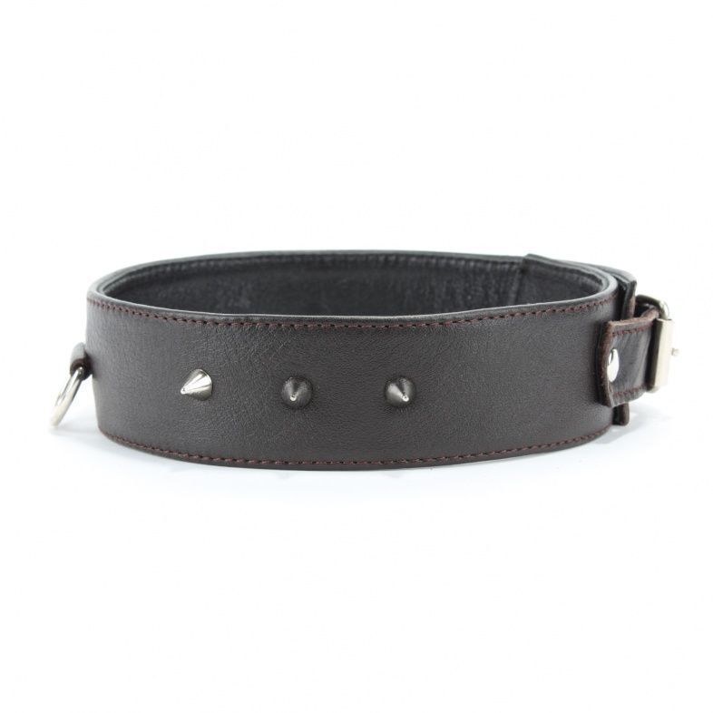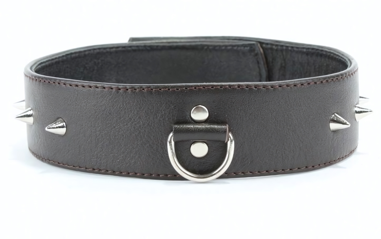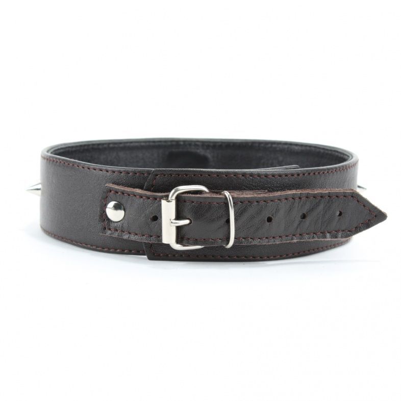 Этот коричневый кожаный ошейник увеличенного размера станет идеальным аксессуаром для тех, кто ценит комфорт и стиль в своих эротических фантазиях. Изготовленный из качественной натуральной кожи, он мягкий и приятный на ощупь, что обеспечивает максимальный комфорт при ношении. Декорированный металлическими шипами, ошейник не только привлекает внимание, но и добавляет нотку дерзости в ваш образ.