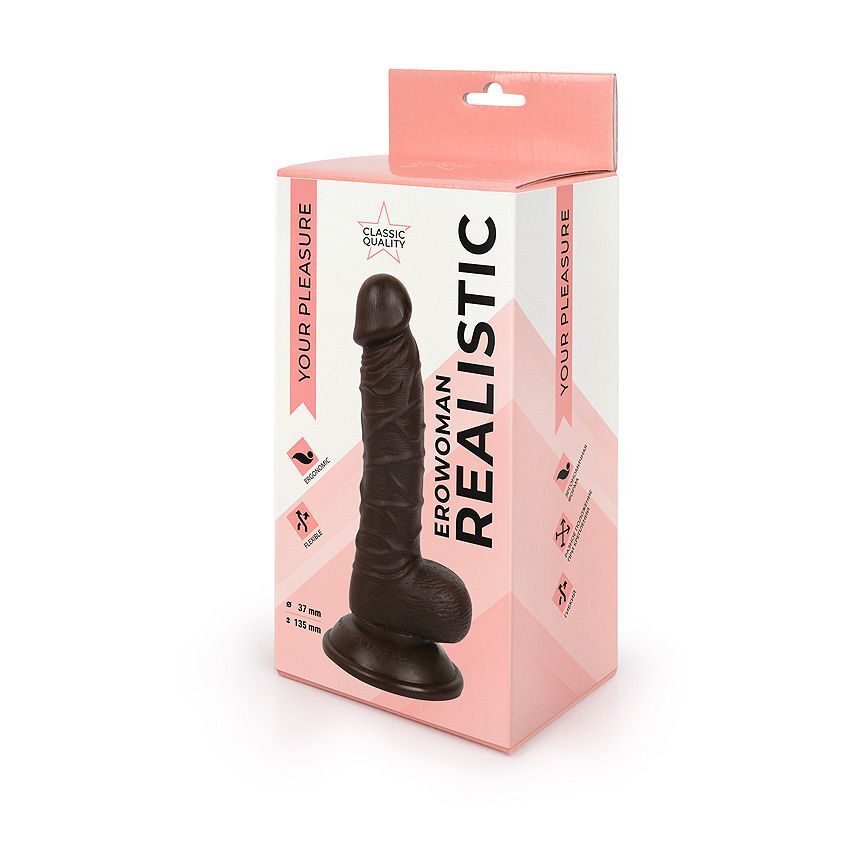 Фаллоимитатор реалистичный EROWOMAN REALISTIC на присоске, TPE, 19,5 см, коричневый