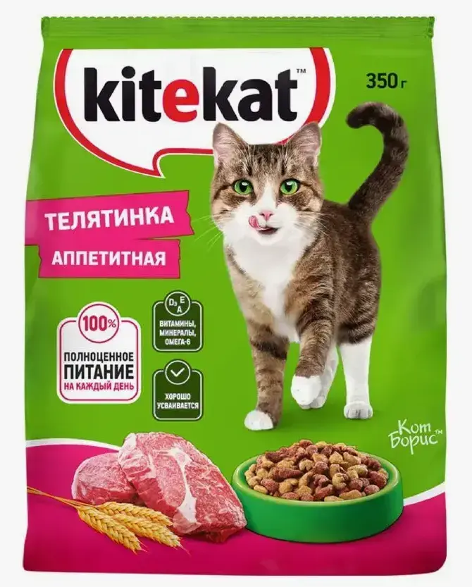 Корм для кошек Kitekat Телятинка аппетитная, 350г, с витаминами и минералами