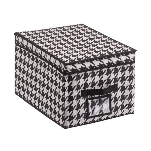Изделие выполнено из прочного, дышащего материала с жёстким каркасом и стильным дизайном, украшенным узором «гусиная лапка». Мягкая ручка из ткани позволяет легко переносить коробку, а прозрачный карман — быстро находить нужные элементы внутри. Идеально подходит для дома, офиса, кладовых или студий, где важна организация пространства.