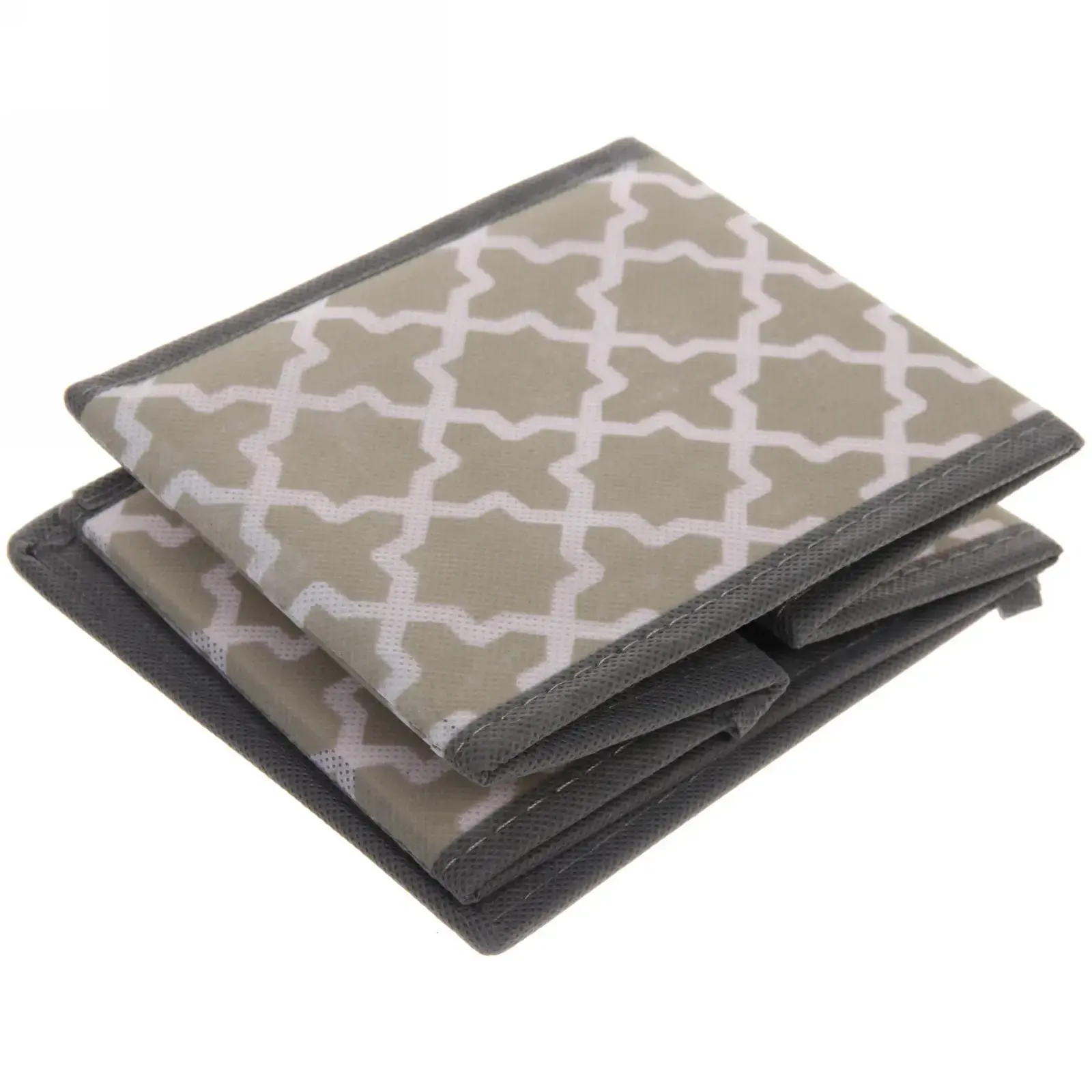 Короб выполнен из текстильного материала с жесткими стенками, что обеспечивает его устойчивость и долговечность. Внутренняя часть имеет однотонный темно-серый цвет, что создает контраст с внешним дизайном. Этот органайзер станет отличным решением для тех, кто ценит порядок и стиль в своем доме.