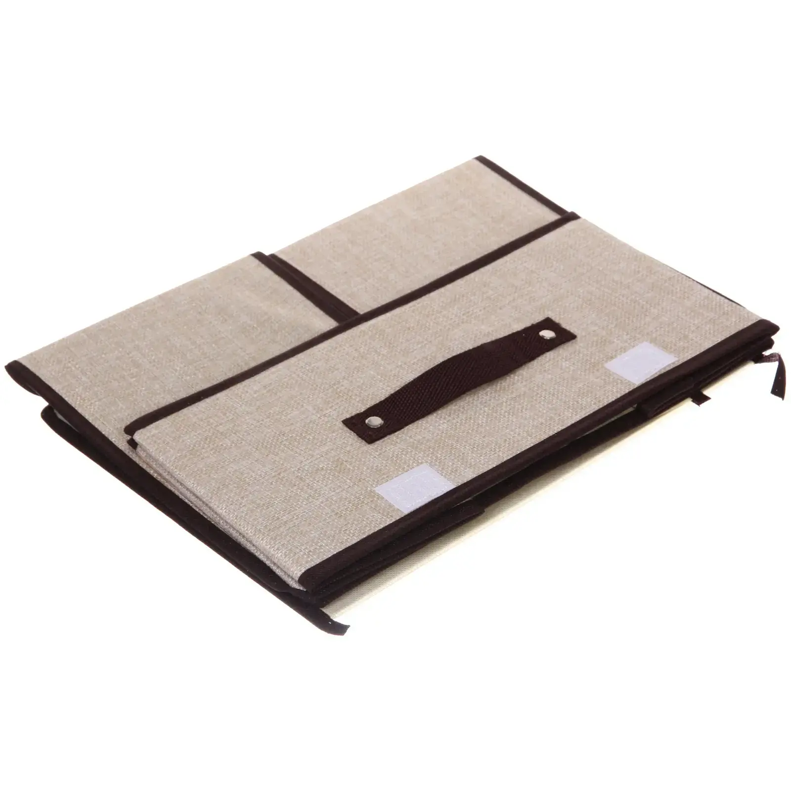Короб - органайзер выполнен из качественного текстильного материала, который обеспечивает долговечность и надежность. Жесткий каркас поддерживает форму, а темно-коричневая ручка добавляет удобства при переноске. Этот органайзер не только практичен, но и стильный, что делает его отличным дополнением к любому интерьеру.