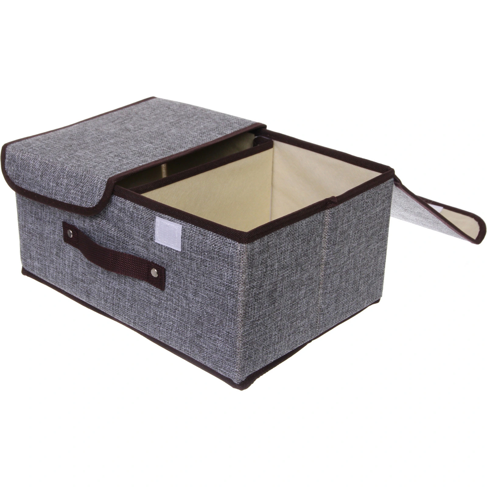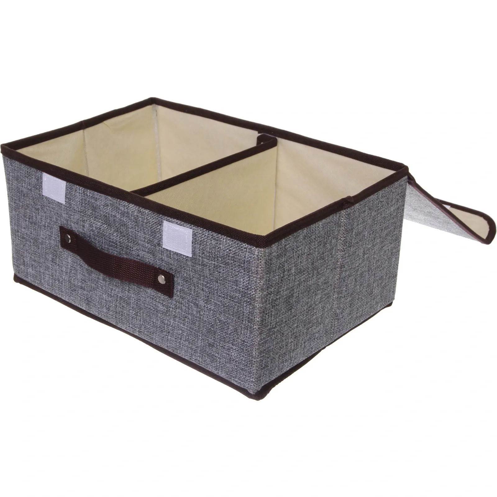Короб-органайзер выполнен из качественного текстиля, что делает его не только стильным, но и практичным. Внутреннее пространство имеет светлый оттенок, что добавляет визуального комфорта. Коричневая окантовка и ручка придают изделию аккуратный вид и делают его удобным в использовании.