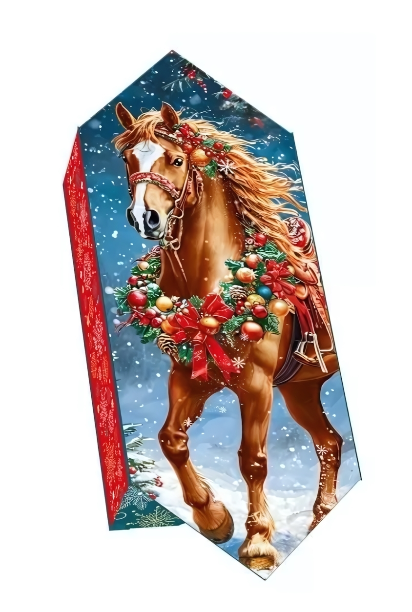Создайте атмосферу праздника и подчеркните ценность вашего подарка с помощью этой эффектной коробки формата А4. Красочный дизайн с изображением рыжего коня с белой гривой, украшенного новогодним венком, моментально вызывает улыбку и ассоциации с зимней сказкой.