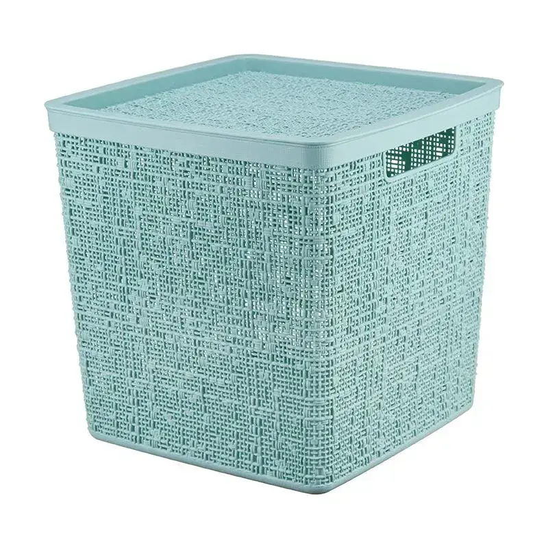 Коробка тканевая с крышкой 28х28см, 17л, бязь, цвет морская волна, организация хранения