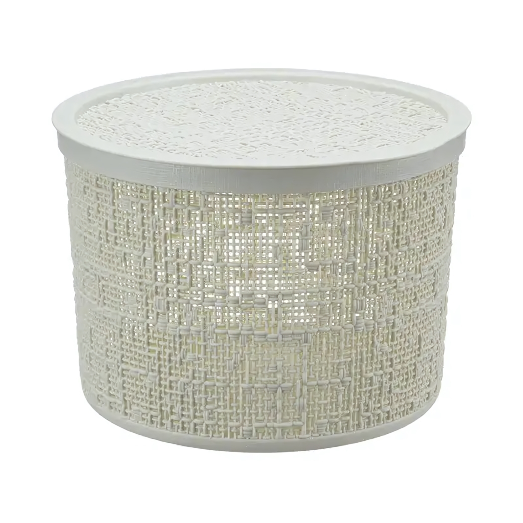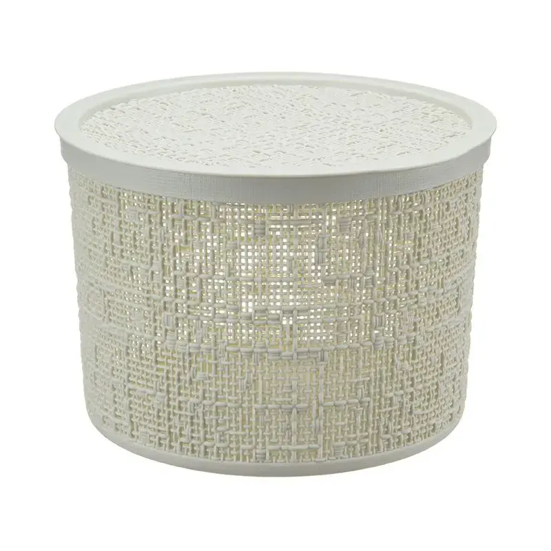 Отгружается один товар. Цвет корпуса и крышки – белый. Дизайн поверхности – равномерное плетение без острых элементов. Подходит для температур от -10°C до +60°C.