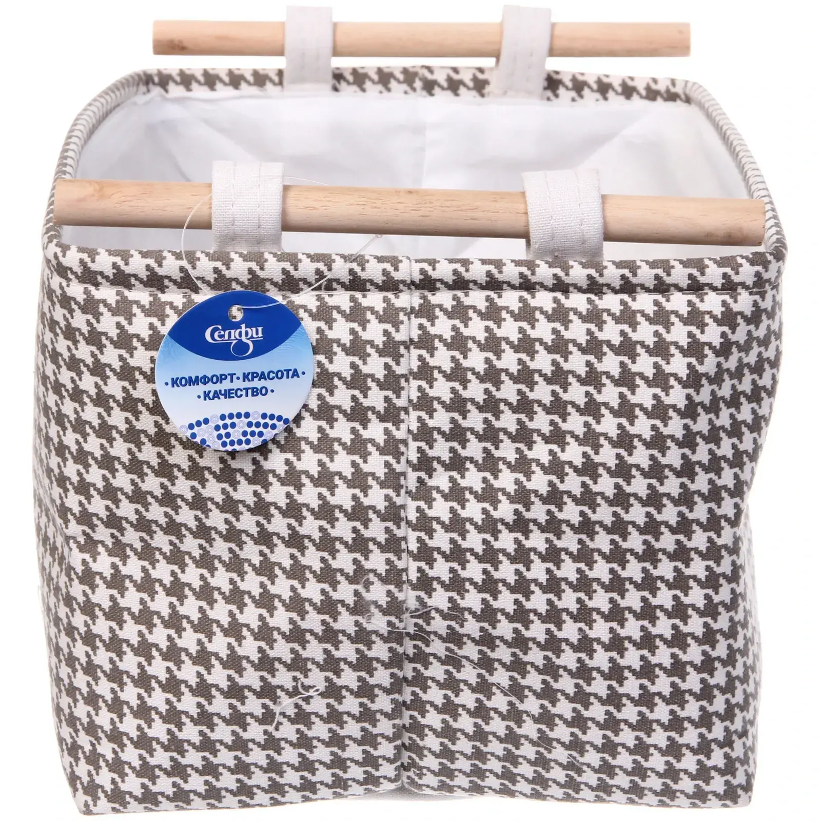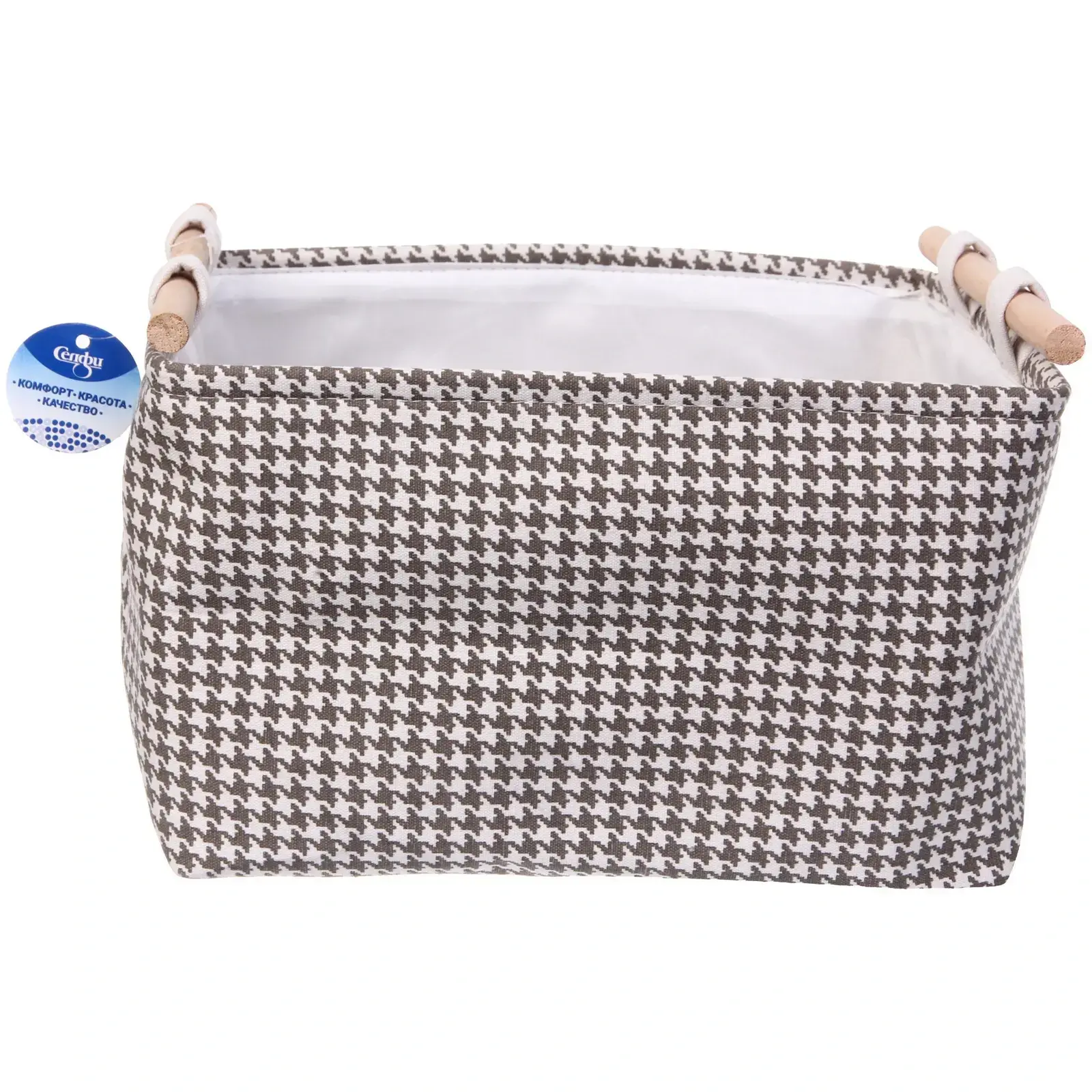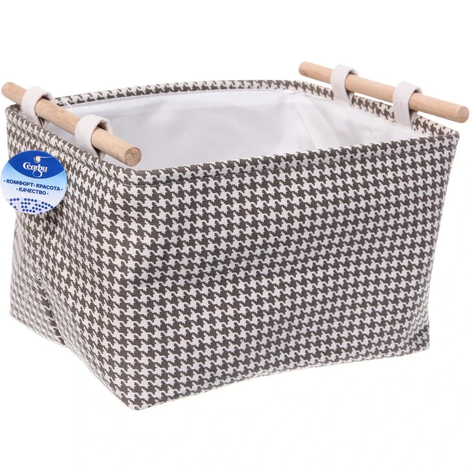 Короб изготовлен из комбинации экологичного дерева и износостойкого текстиля. Прямоугольная форма позволяет эффективно использовать пространство, а отсутствие крышки обеспечивает быстрый доступ к содержимому. Легко чистится влажной салфеткой при необходимости.