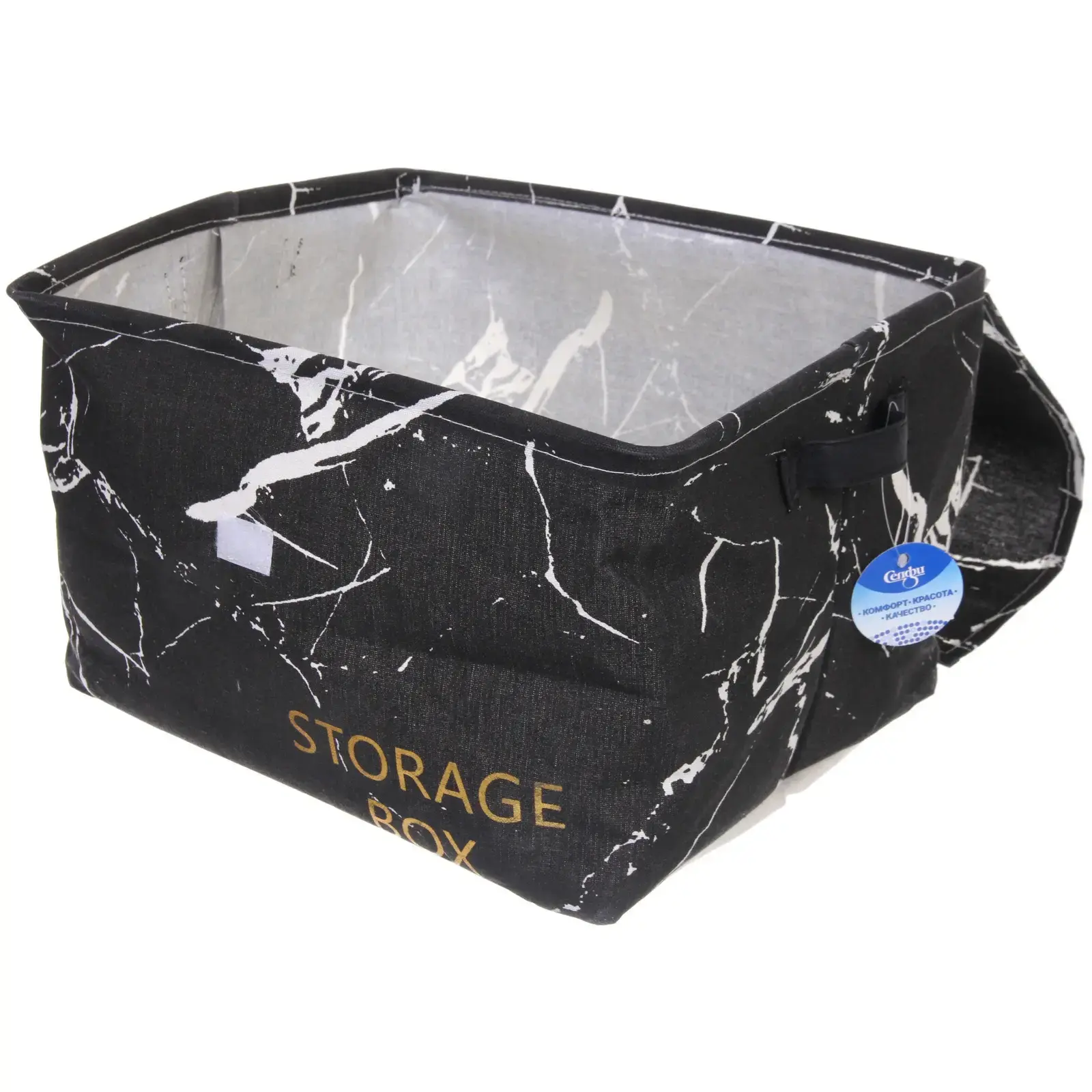 Коробка имеет прямоугольную форму и выполнена в черном цвете с белыми мраморными прожилками. Внутренняя поверхность светлая, что позволяет легко находить нужные предметы. Удобные ручки по бокам делают ее переноску комфортной. Не упустите возможность сделать ваш дом более организованным и стильным с помощью коробки для хранения «ИДЕЯДОМА»!