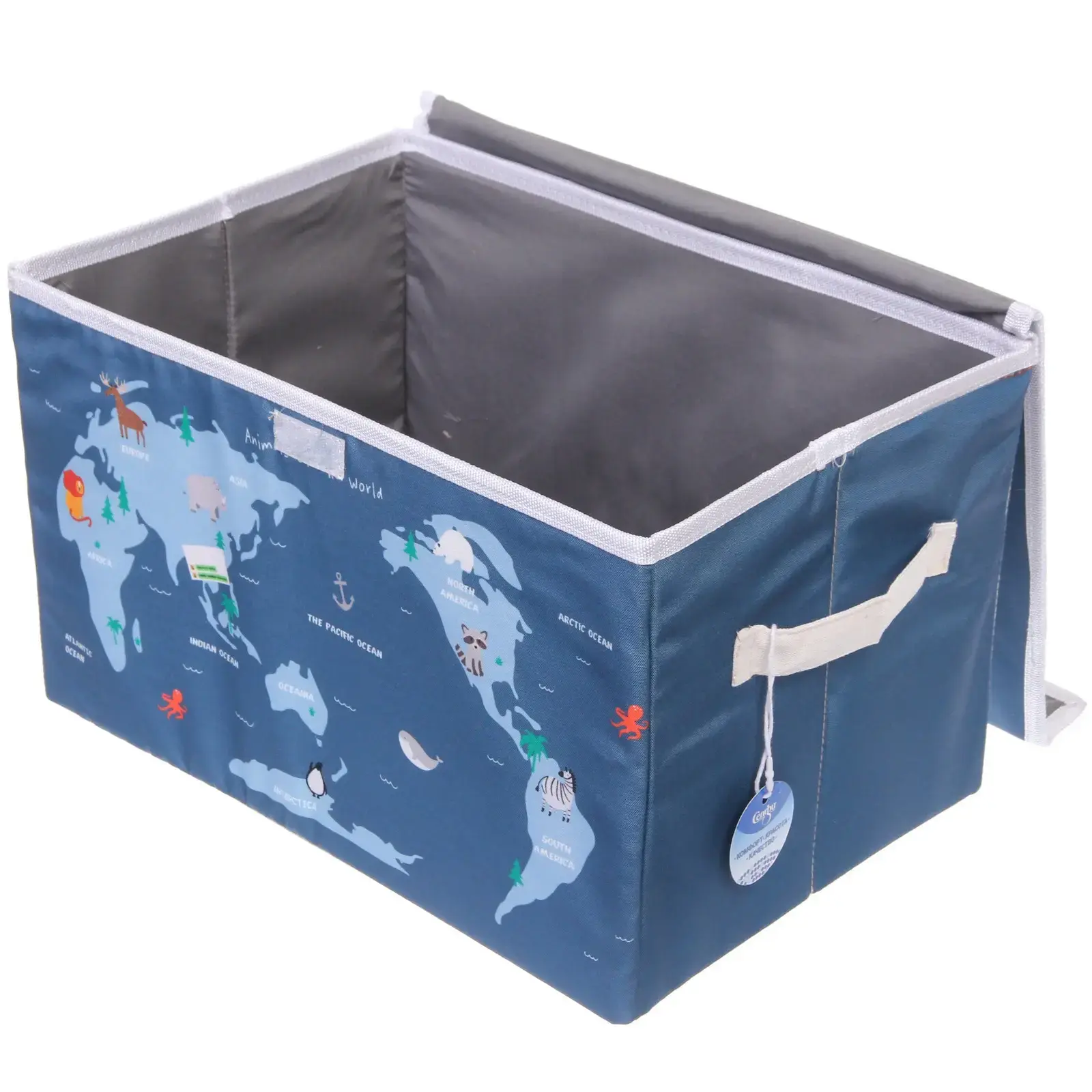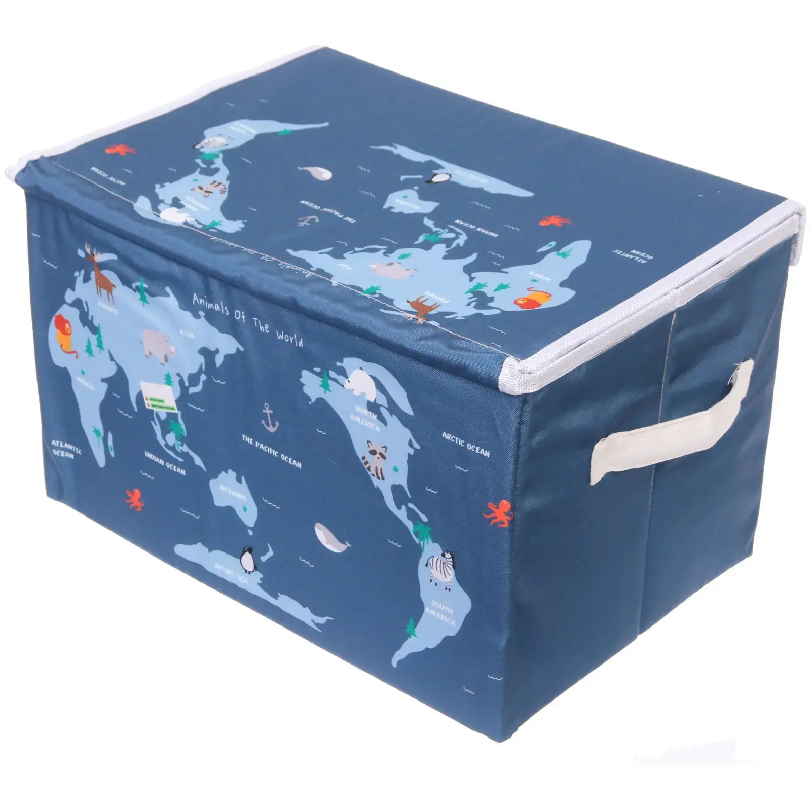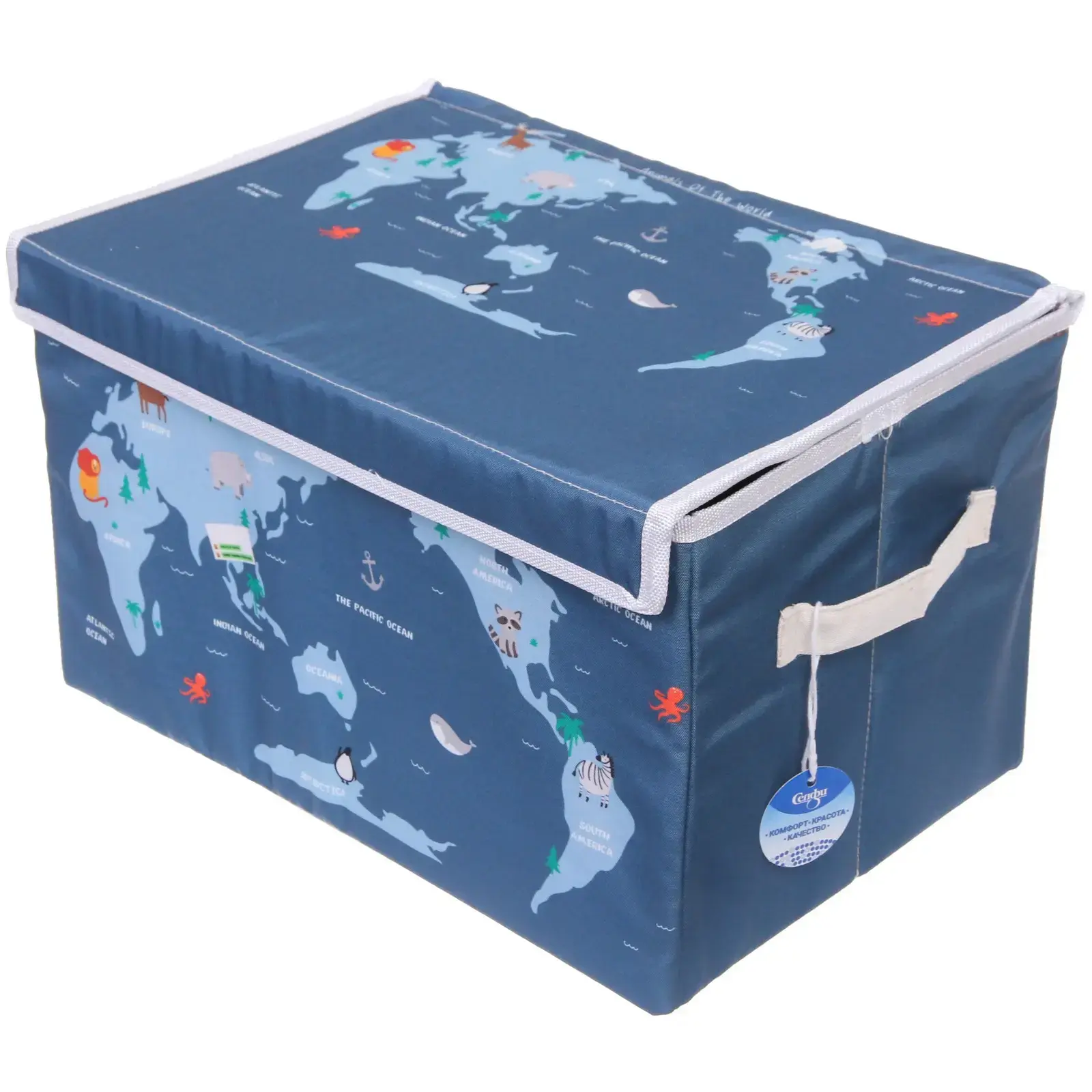 Коробка для хранения 'Карта мира', 40*27*25см, текстиль, синий