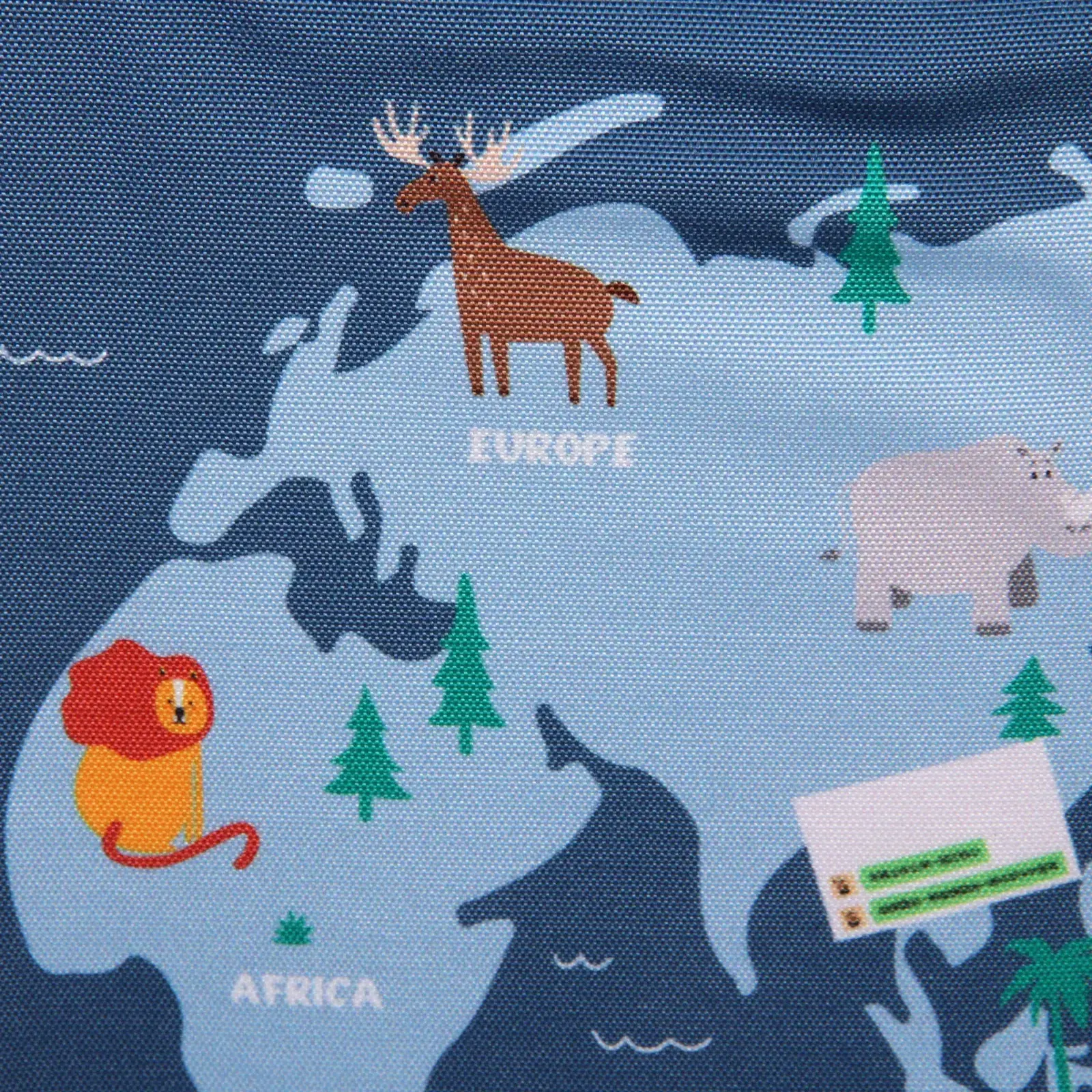 Коробка украшена красочной картой мира с изображениями животных, что делает её особенно привлекательной для детей. Она помогает развивать интерес к географии в игровой форме, знакомя малышей с обитателями разных континентов.