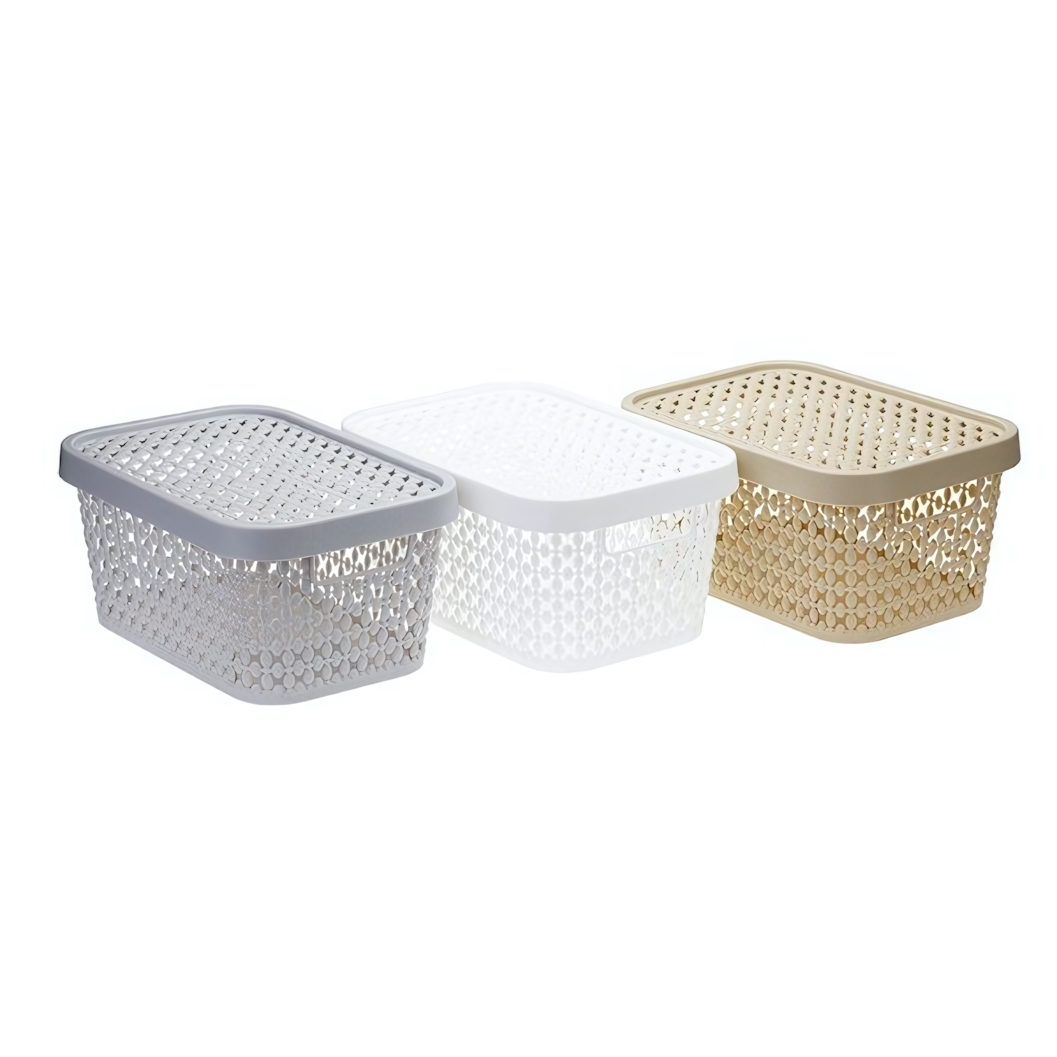 Модель подходит для хранения ниток и принадлежностей для рукоделия, косметики, аксессуаров, детских носочков и других небольших вещей. Крышка защищает содержимое от пыли и помогает сохранить аккуратный вид полок и шкафов. Перфорация в виде изящного плетения позволяет видеть содержимое, не открывая коробку, что экономит время при поиске нужной мелочи.