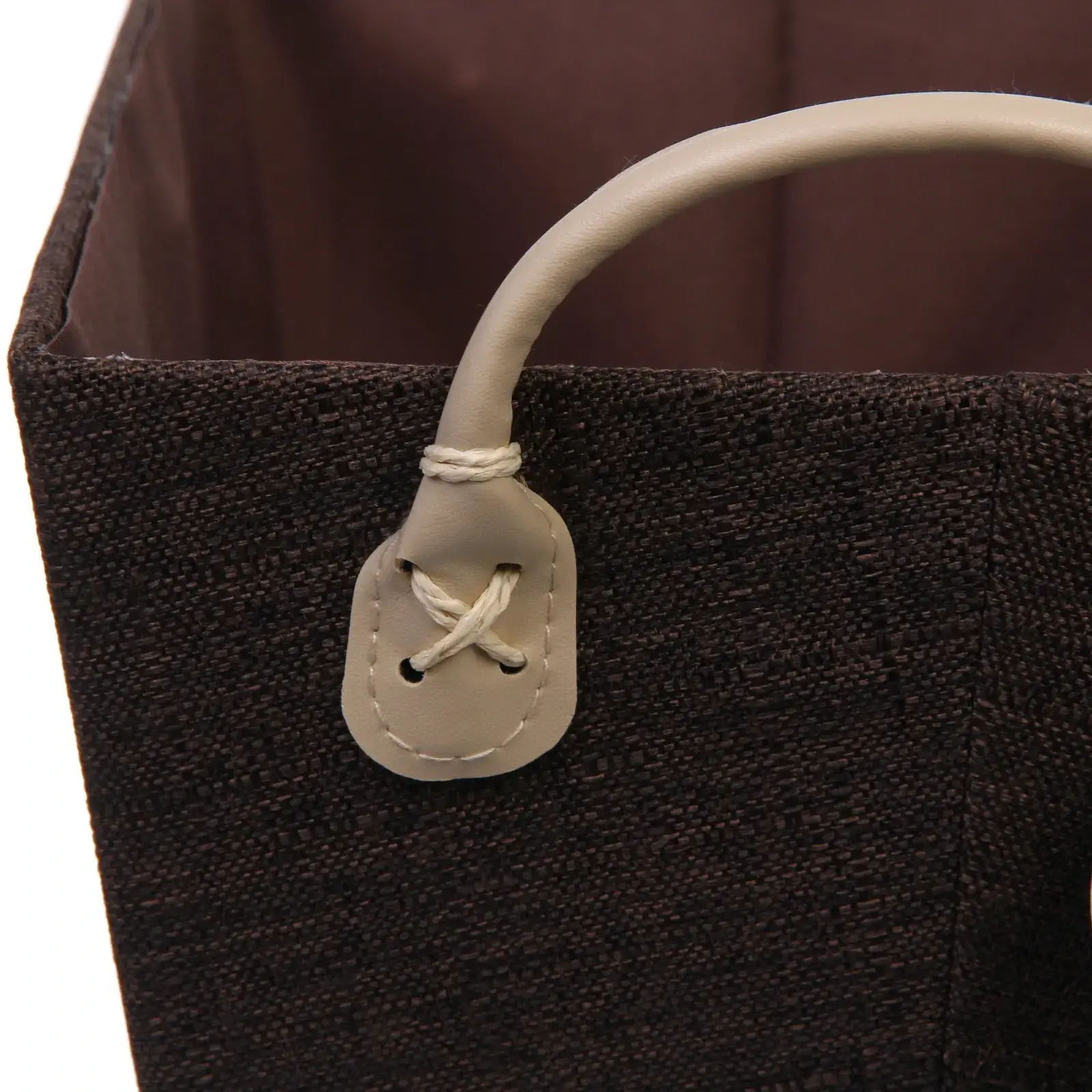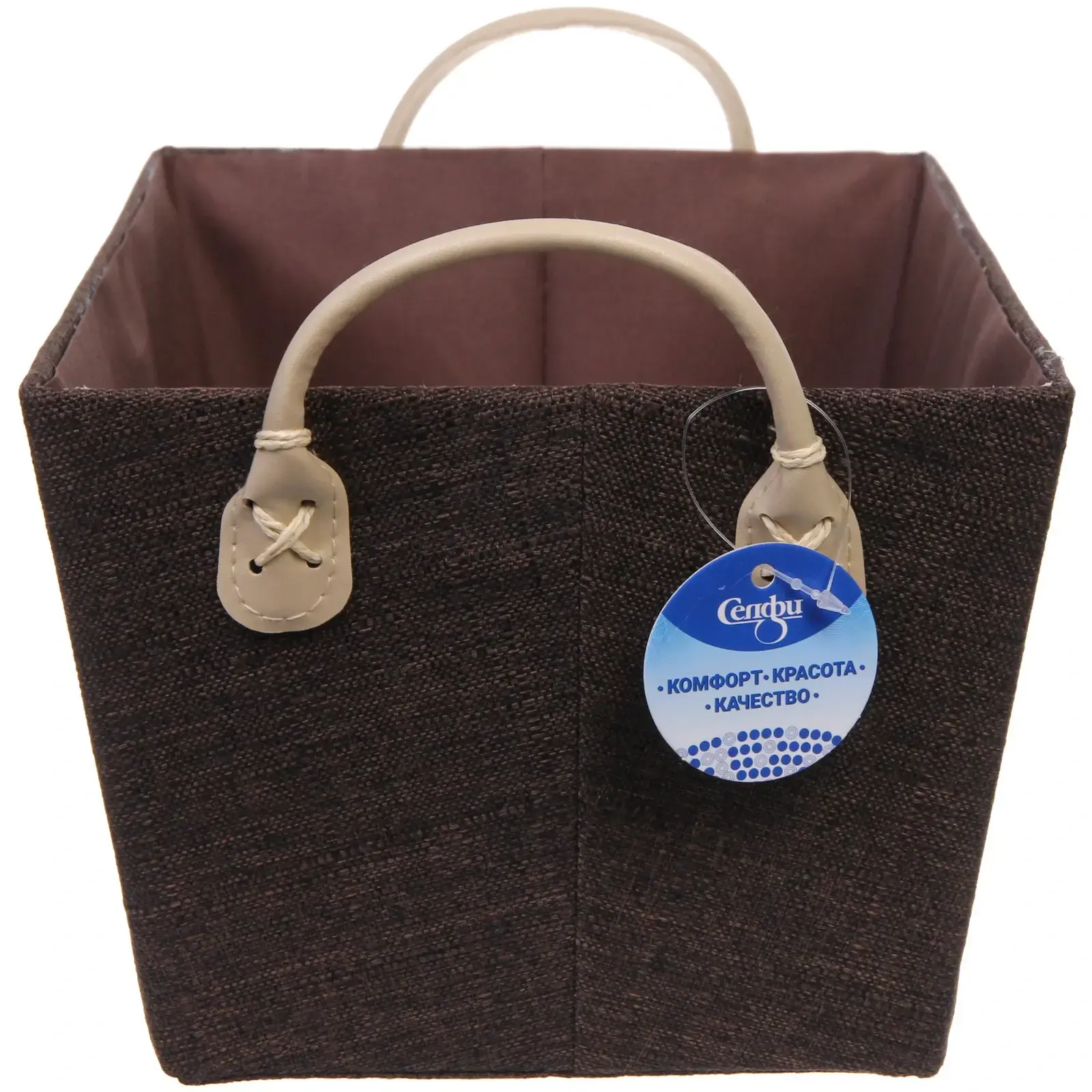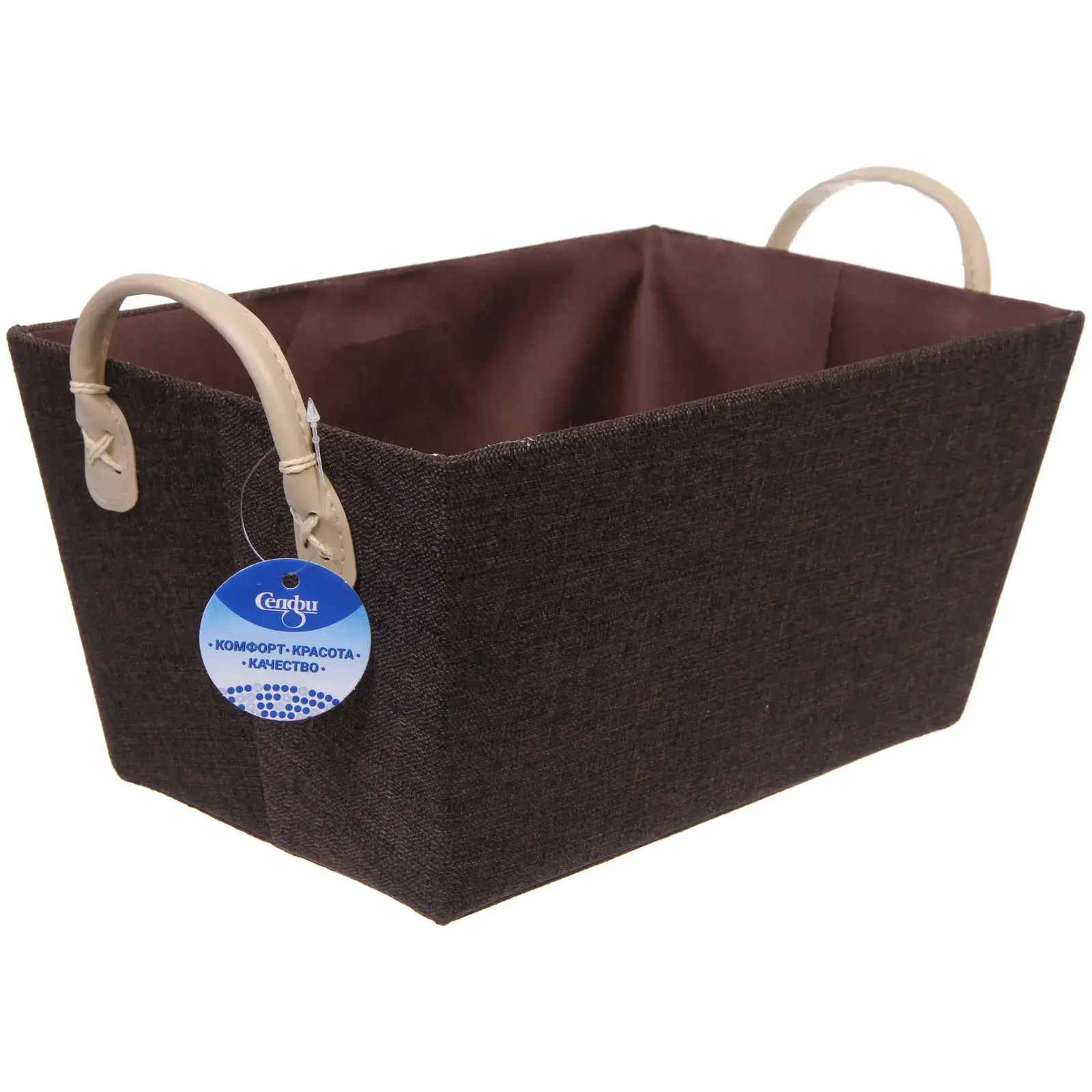 Коробка для хранения «ЭЛЬГА» с ручками, 31×21×16 см, коричневая, ПВХ и текстиль, стильный органайзер