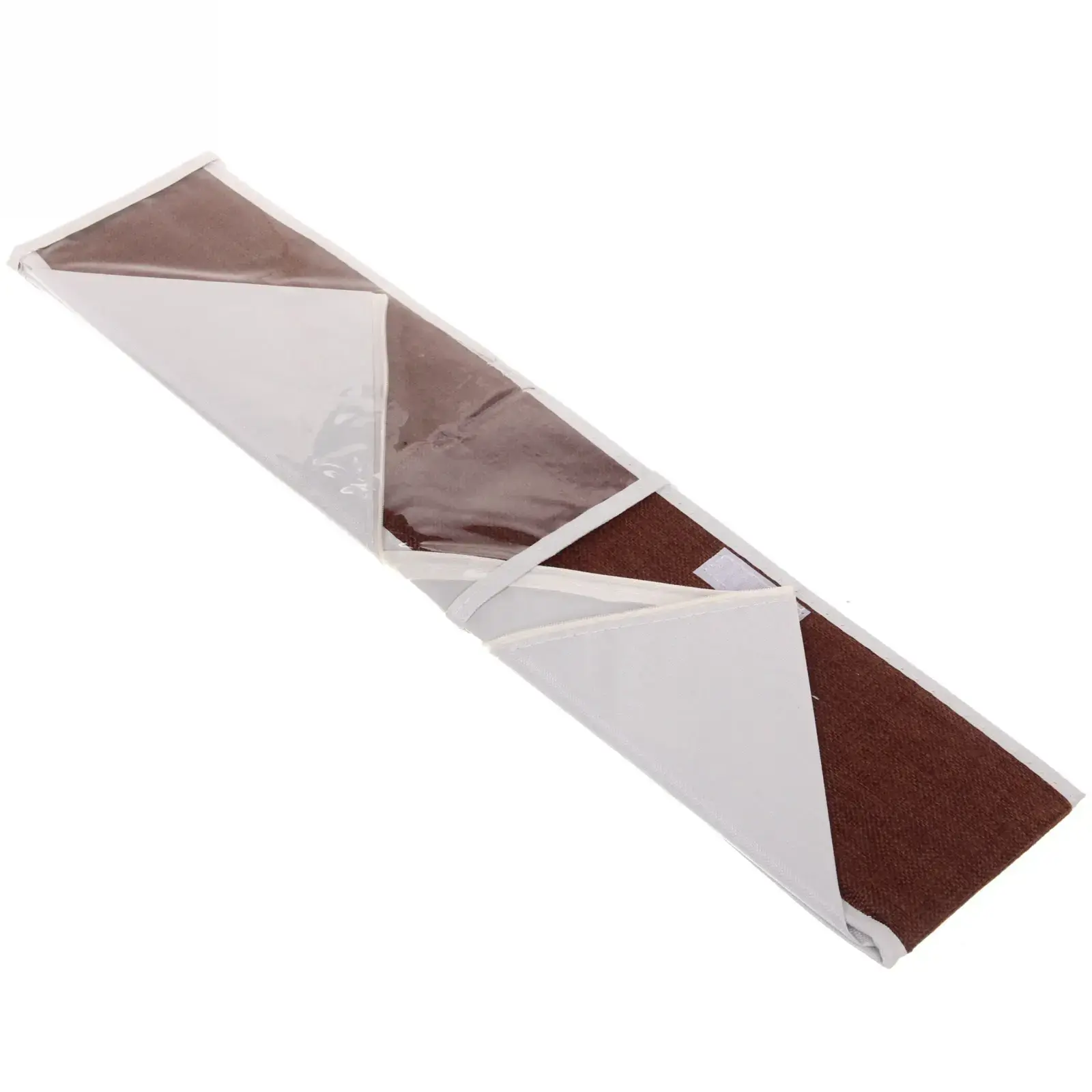 Материал: износостойкий текстиль (основание) + прозрачный ПВХ (крышка). Цветовая гамма сочетает классический коричневый оттенок «махагон» со светлыми внутренними перегородками для лучшей видимости содержимого. Жесткие стенки с двойной строчкой обеспечивают устойчивость конструкции.