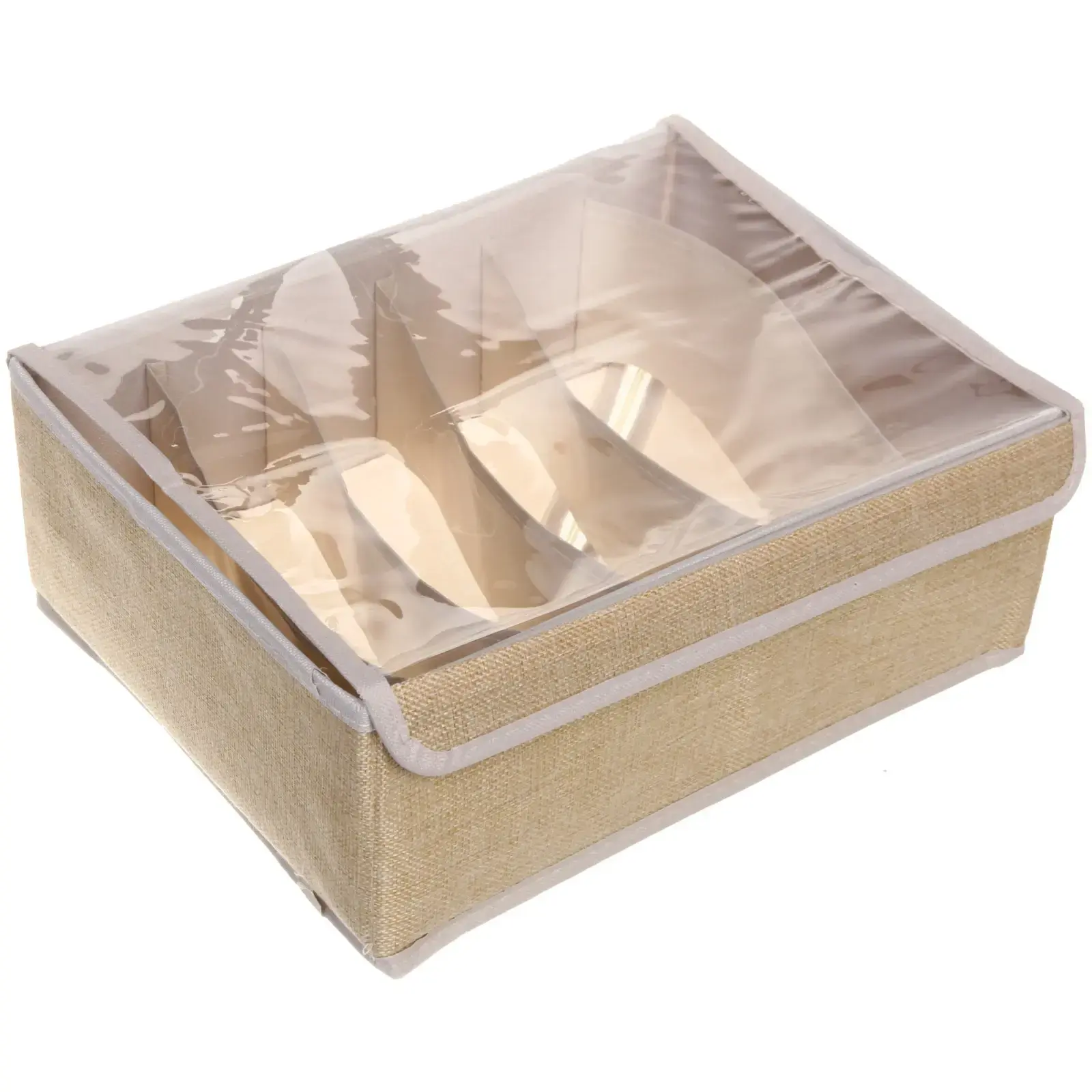 Органайзер для хранения «УЮТДОМА» с прозрачной крышкой, 6 отделений, 32×23×12 см, бежевый, ПВХ и текстиль