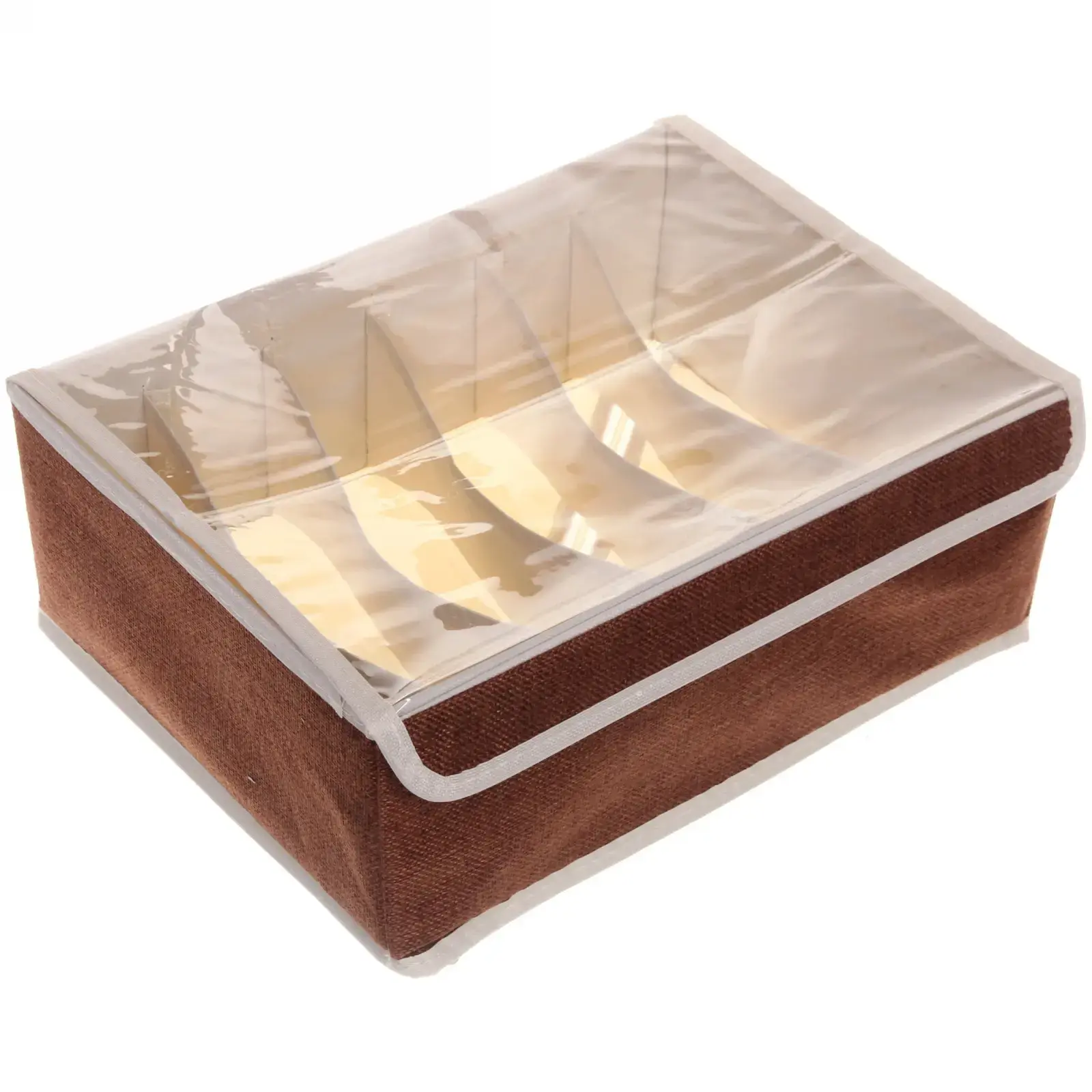 Кофр-органайзер «УЮТДОМА» с прозрачной крышкой, 6 отделений, 32×23×12 см, текстиль/ПВХ, коричневый
