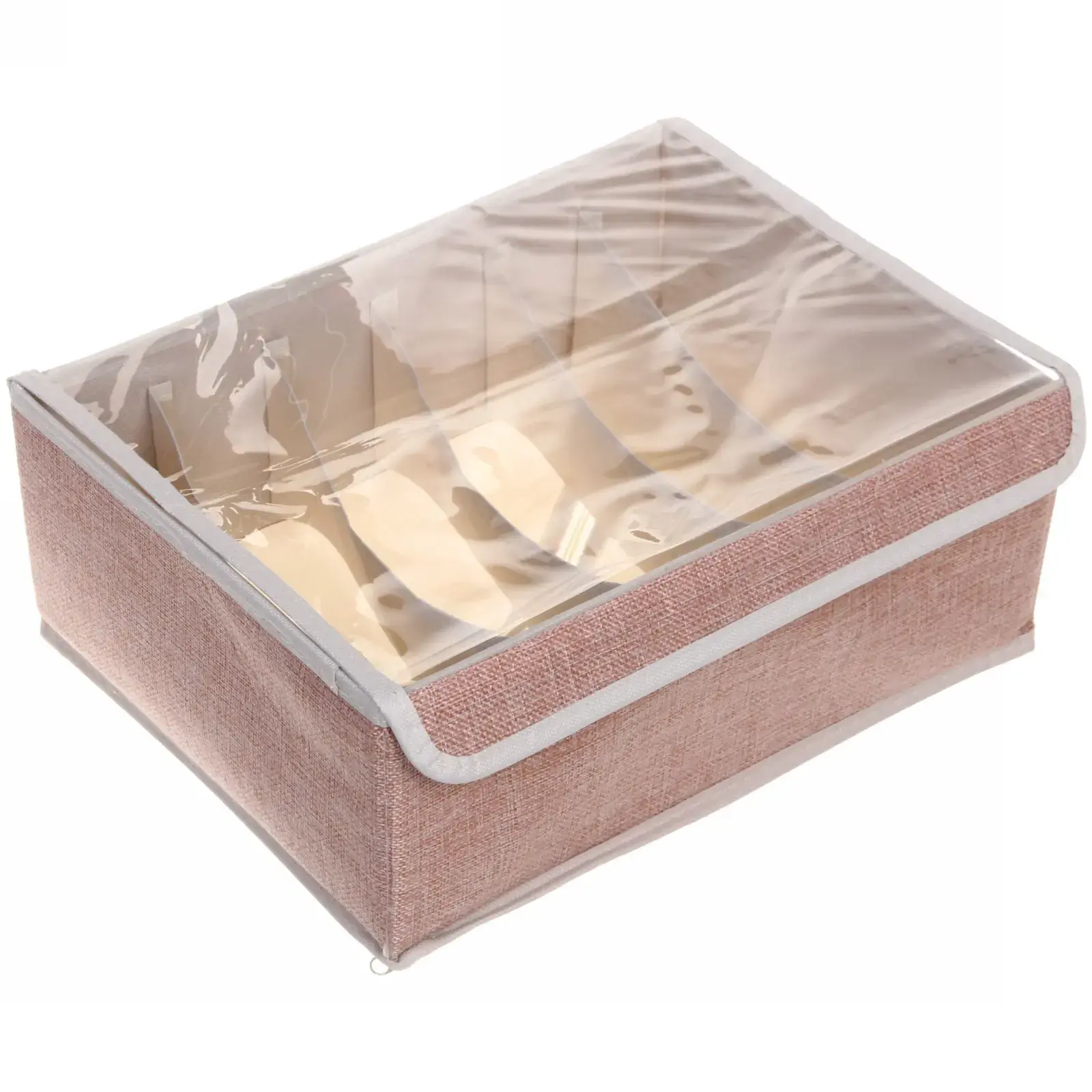 Органайзер для хранения 6 ячеек, 32х23х12 см, текстиль и ПВХ, розовый с прозрачной крышкой