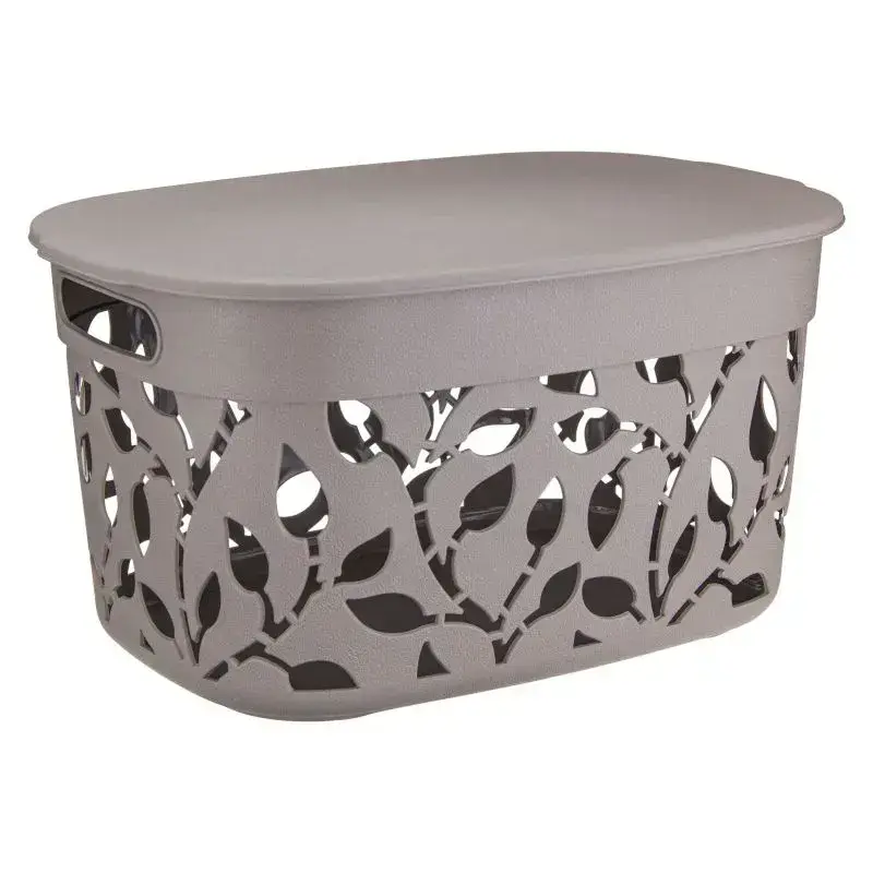 Корзина пластиковая Idea "ФЛОРА" 12л, комплект 6 шт, крышка, ручки, французский серый, 20.5х26.5х37.5см