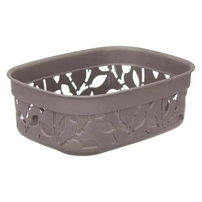 Коробка пластиковая 'ФЛОРА' 1л, серый, декор листья, 6.5х14х18.5см