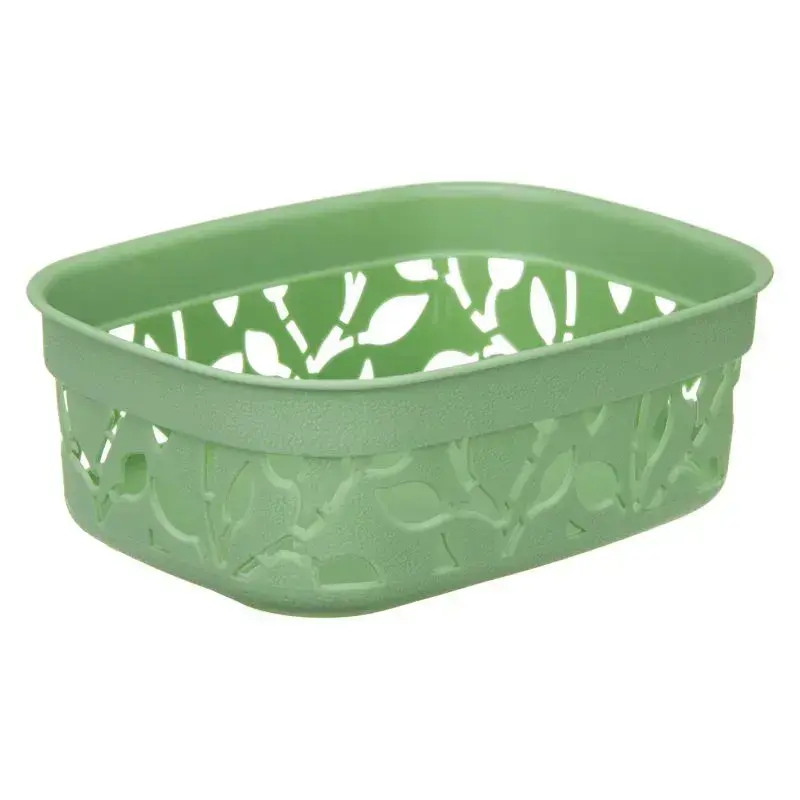 Пластиковая коробка 'ФЛОРА' объемом 1 литр создана для практичного хранения мелочей и украшения интерьера. Её нежно-мятный оттенок и стильный узор в виде листьев добавят свежести любому помещению.