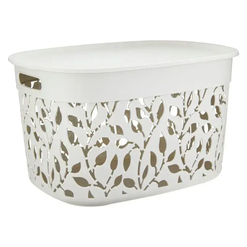 Коробка для хранения "ФЛОРА" 25л с крышкой, комплект 5 шт, пластик, дизайн белый ротанг