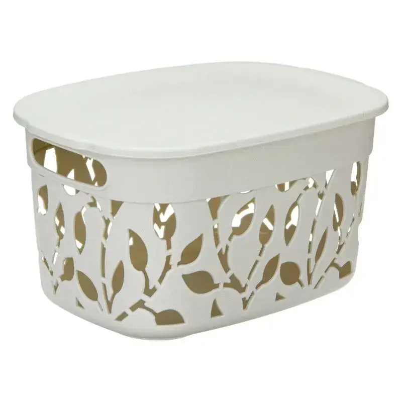 Коробка для хранения "ФЛОРА" 5,5л с крышкой, белый ротанг, 15.5х20.5х28 см, комплект 15 шт