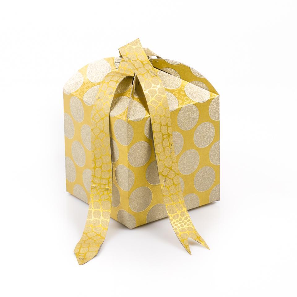 Ищете способ красиво упаковать подарок? Подарочная коробка 15см – это именно то, что вам нужно! Она выполнена из качественного картона и оформлена в ярком желтом цвете с крупными золотистыми точками, что придаёт ей стильный и праздничный вид. Эта коробка станет отличным дополнением к любому подарку, делая его ещё более привлекательным для получателя.
