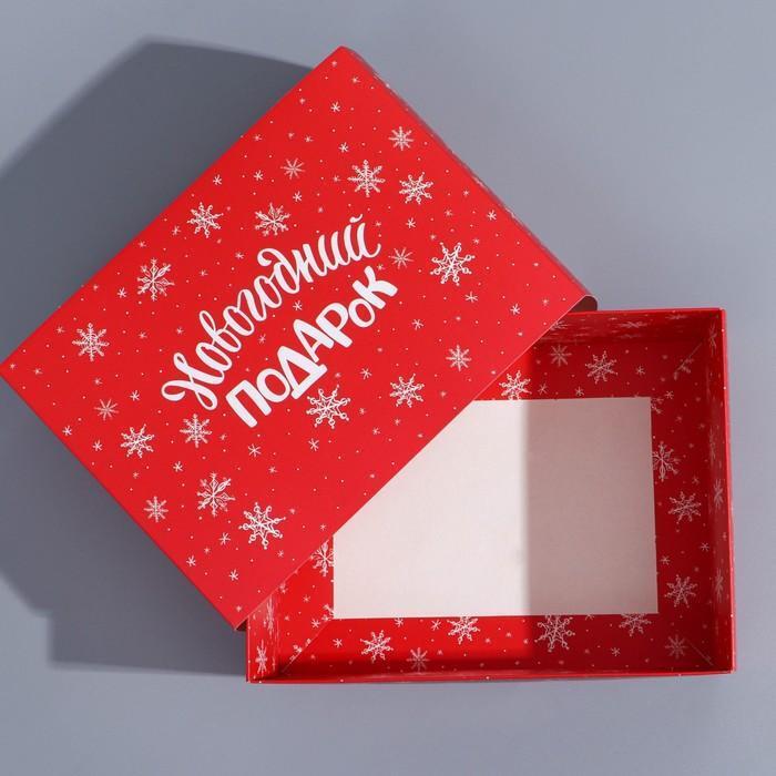 Коробка подарочная новогодняя 20х15х8 см, сборная, красная со снежинками, "Новогодний подарок"
