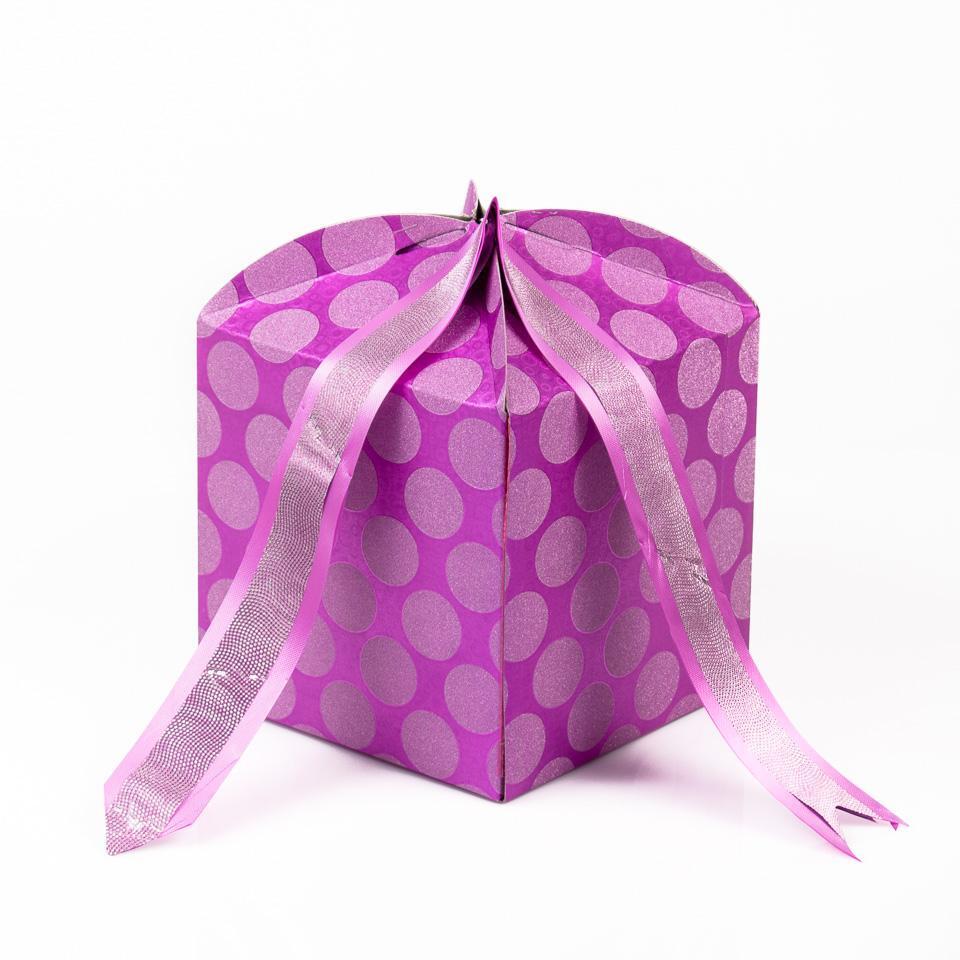 Простая сборка за 3 шага: 1) Расправьте стенки коробки 2) Закрепите дно фиксаторами 3) Завяжите готовые банты. Подходит для новогодних подарков, детских сюрпризов и юбилейных презентов.