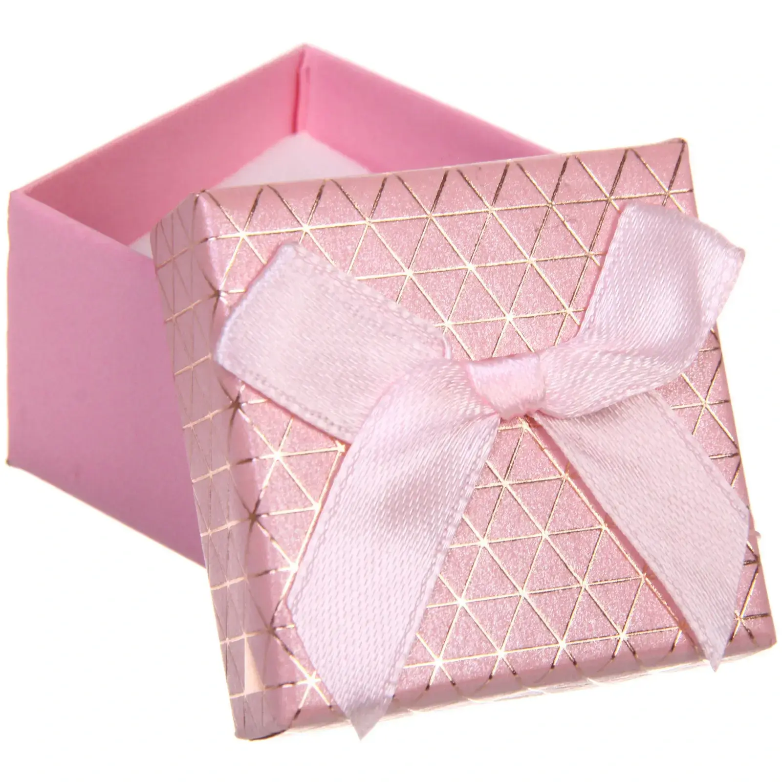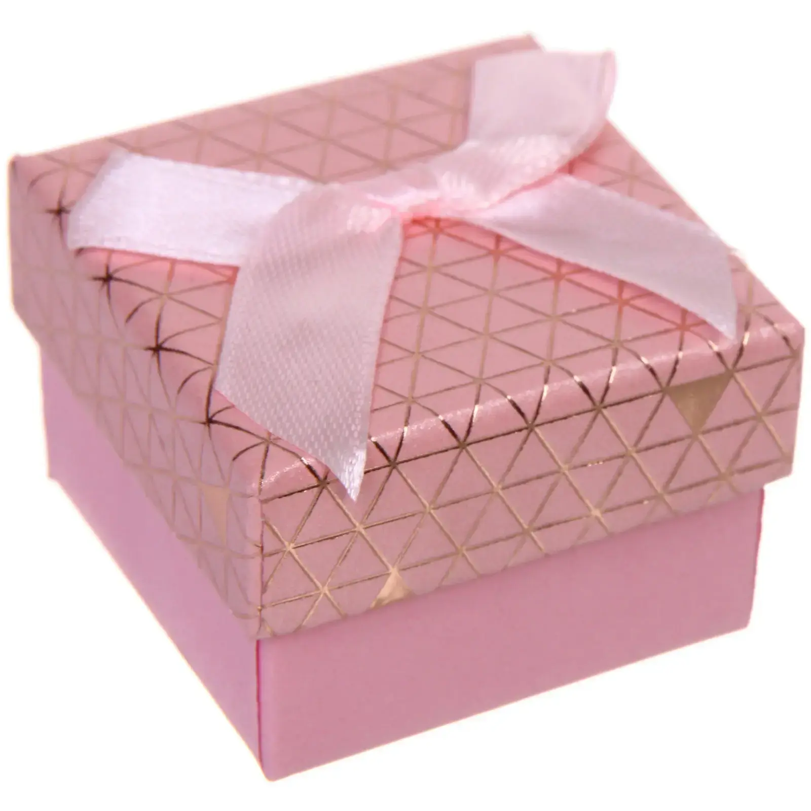 Коробка имеет размеры 5х5х3,5 см, что делает её идеальной для упаковки небольших подарков, таких как ювелирные изделия, косметика или сладости. Она состоит из двух частей, что позволяет легко открывать и закрывать её. Благодаря бантику из атласной ленты светло-розового цвета, коробка выглядит ещё более нарядно и привлекательно.