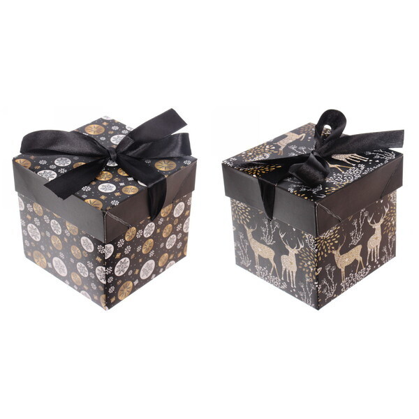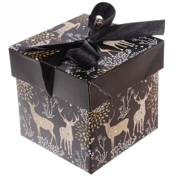 - Черная атласная лента в виде банта придаёт коробке завершённый и стильный вид.