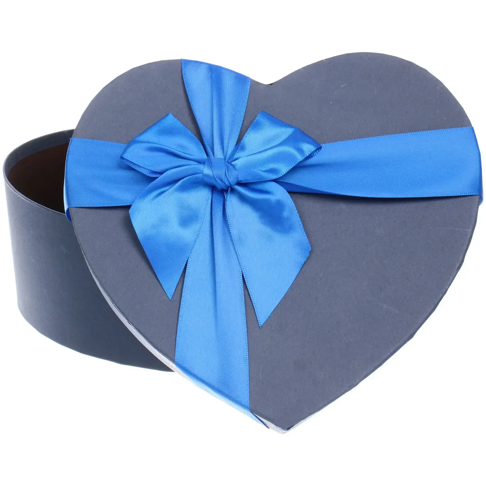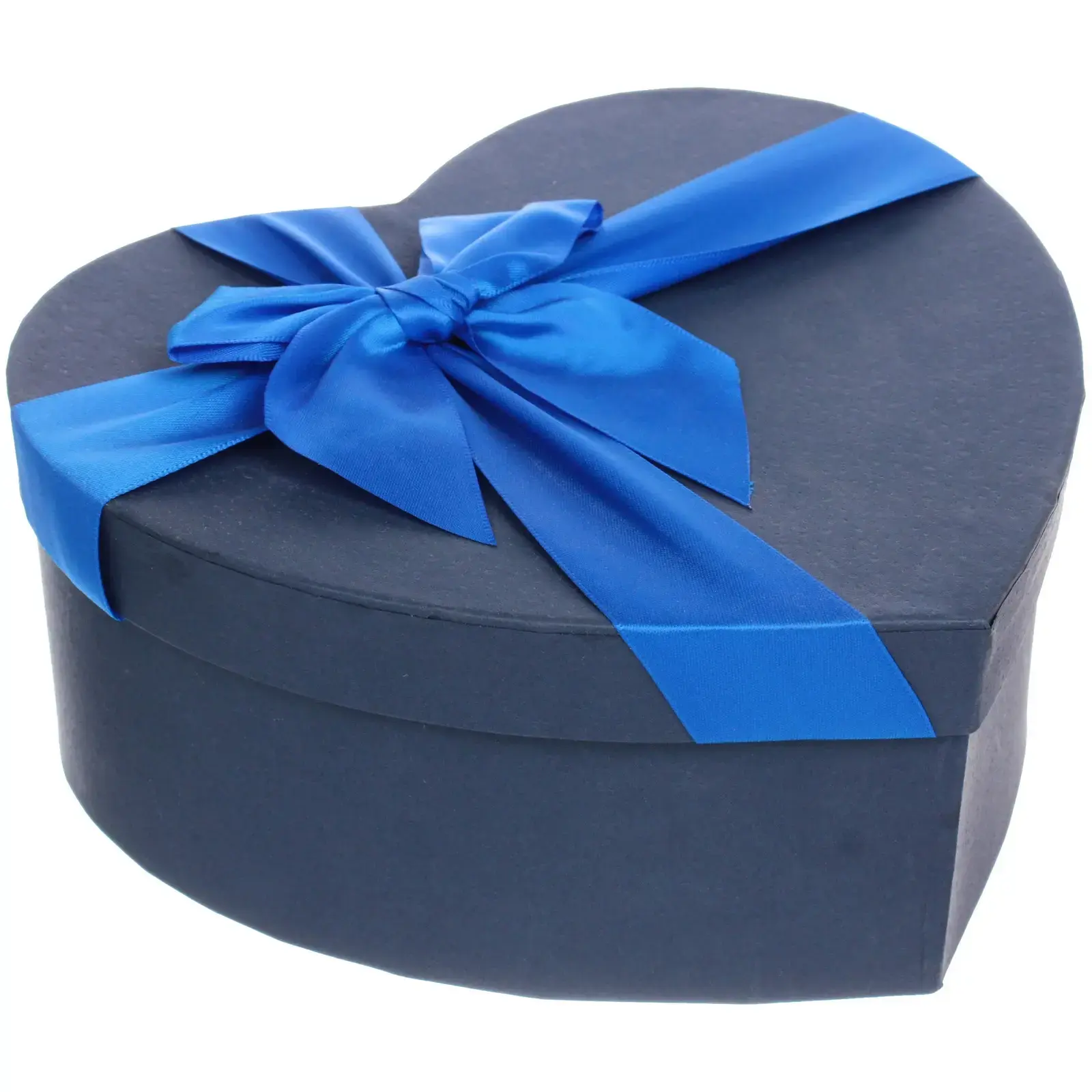 Коробка изготовлена из качественного картона, что делает ее легкой и удобной в использовании. Темно-синий цвет и атласная лента придают ей элегантный вид, а форма сердца символизирует любовь и заботу. Размеры 22х20х9 см позволяют использовать коробку для различных подарков, что делает ее универсальным выбором для любого праздника.