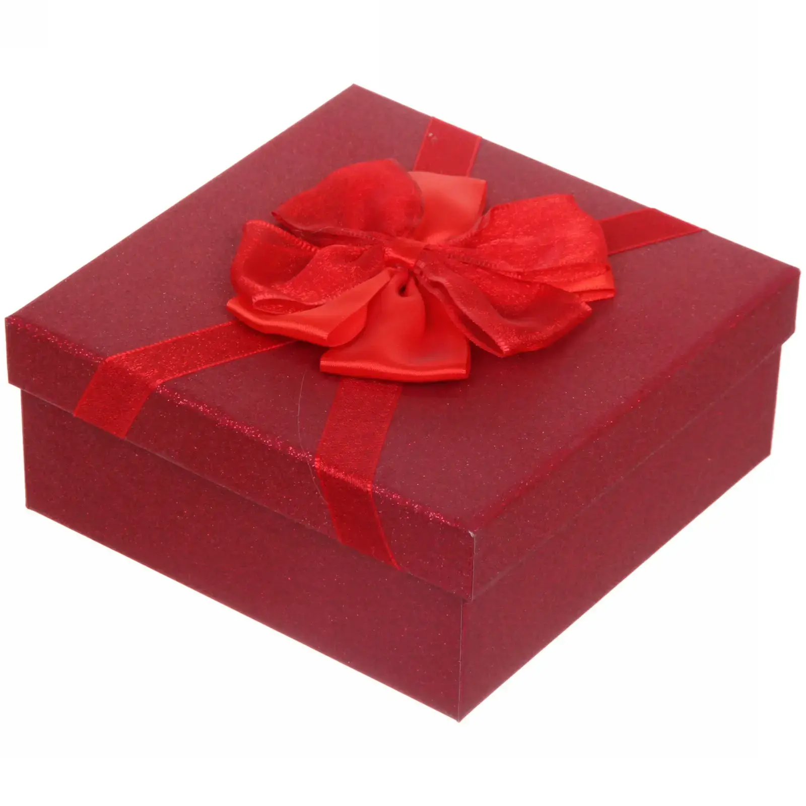 Коробка выполнена из качественного картона и бумаги, что гарантирует её долговечность и устойчивость к повреждениям. Красный цвет с блестящей отделкой придаёт ей элегантный вид, а бантик добавляет завершающий штрих. Размеры 15,5х15,5х6,5 см делают её идеальной для упаковки различных подарков, от косметики до мелких аксессуаров.