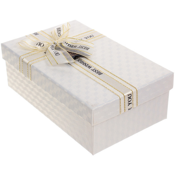 Коробка выполнена из качественного картона, что гарантирует ее прочность и долговечность. Размеры 19х12х6,5 см позволяют упаковать как небольшие, так и средние подарки. Белый цвет и золотистая лента делают ее подходящей для любого праздника и события.