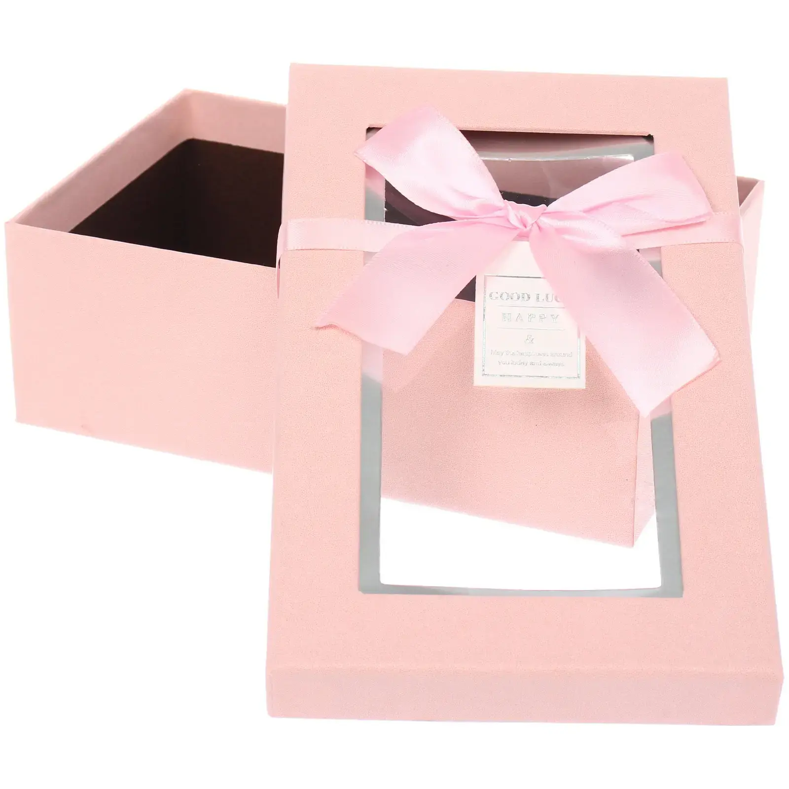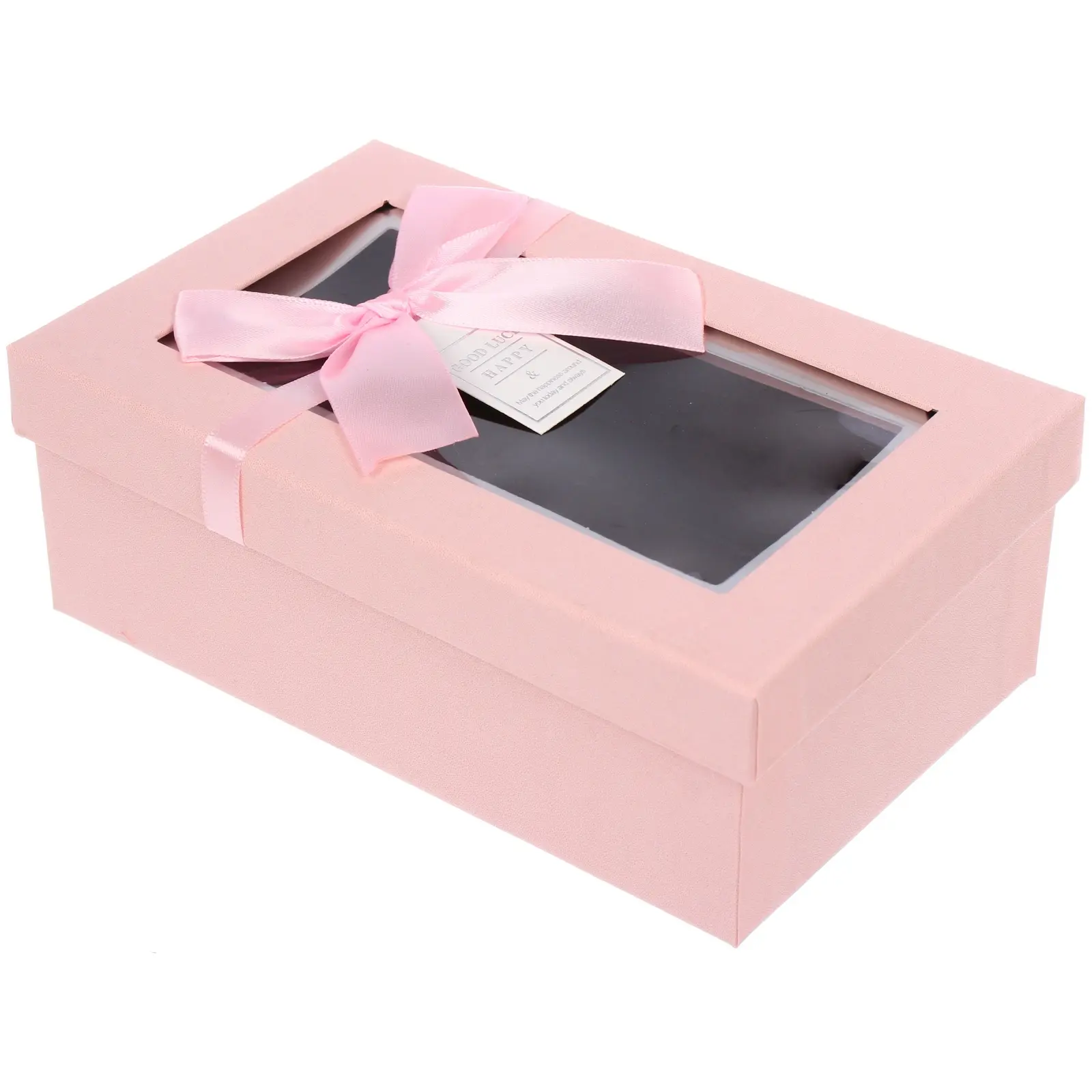 Подарочная коробка 'Нежная душа', 19х12х6.5см, розовый картон с прозрачной крышкой