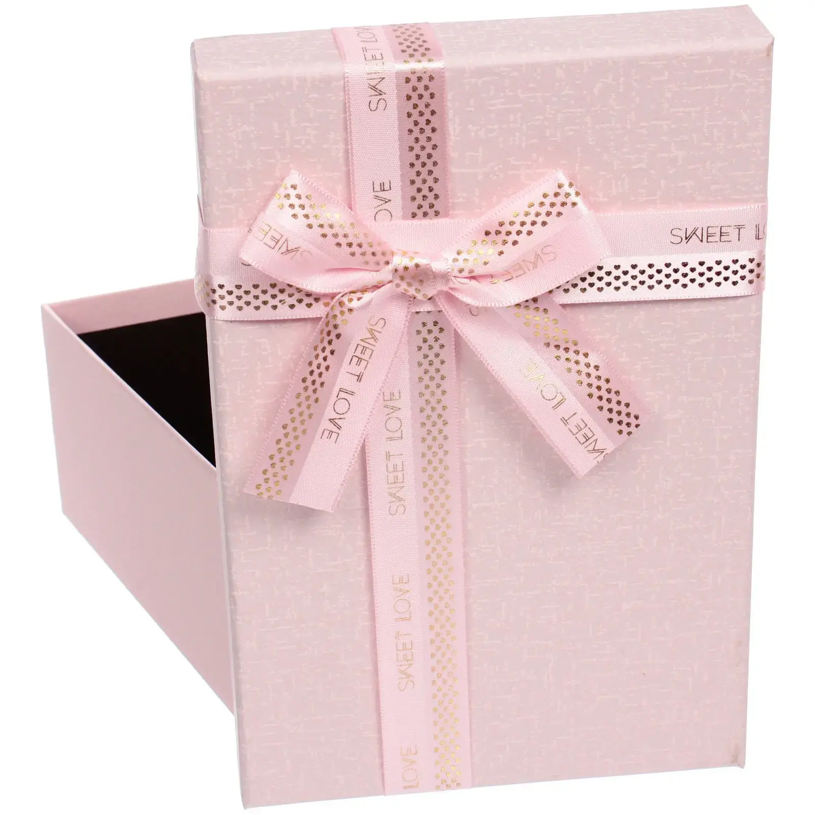 Коробка имеет прямоугольную форму и выполнена из картона, что делает её легкой и удобной в использовании. Внутренняя часть коробки окрашена в черный цвет, что создает контраст с розовой внешней стороной. Размеры 21х14х8 см позволяют упаковать в неё как небольшие подарки, так и более крупные предметы, что делает её универсальным выбором для любого праздника.