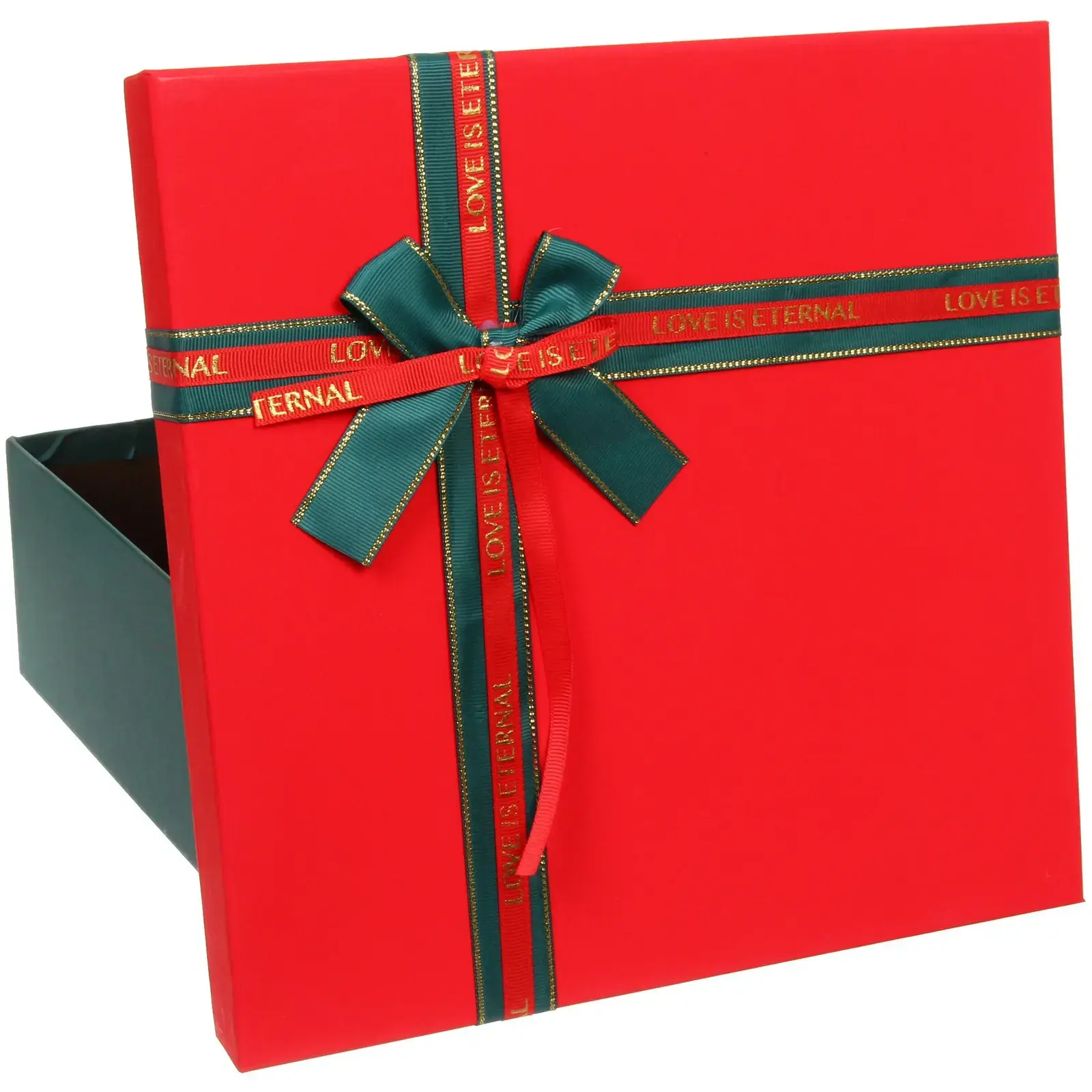 Выбирая подарочную коробку «Новогоднее волшебство», вы получаете не только красивую упаковку, но и практичное решение для хранения подарков. Коробка изготовлена из прочного картона, что обеспечивает её долговечность и надежность. Атласная лента темно-зеленого цвета с золотыми надписями «LOVE IS ETERNAL» добавляет изысканности и делает упаковку ещё более привлекательной.