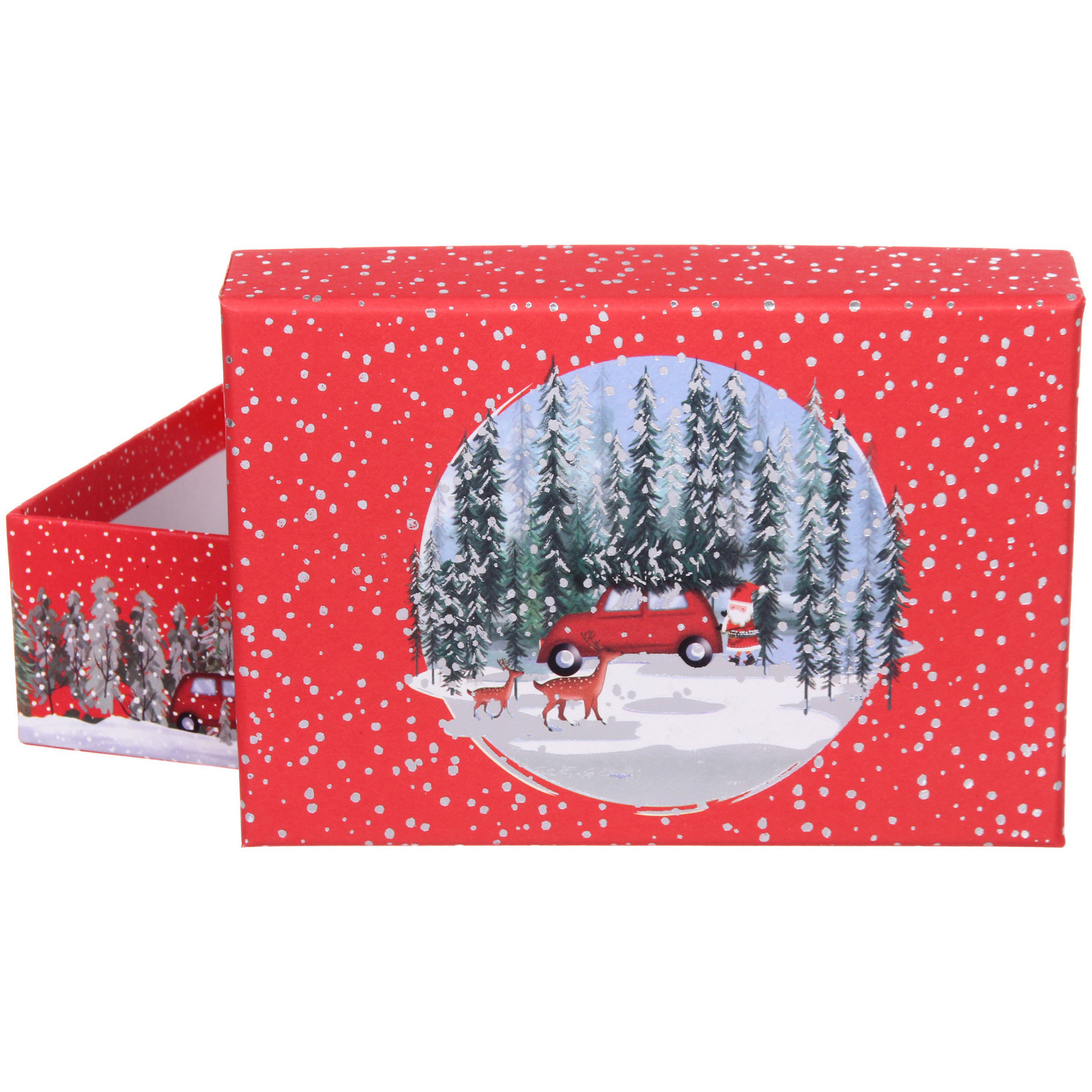 Коробка выполнена из качественного картона, что гарантирует её легкость и прочность. Размеры 17х12х5,5 см позволяют использовать её для упаковки различных подарков, от игрушек до косметики. Праздничный дизайн с зимним пейзажем и красным автомобилем добавляет уникальности и делает её идеальным выбором для новогодних праздников.